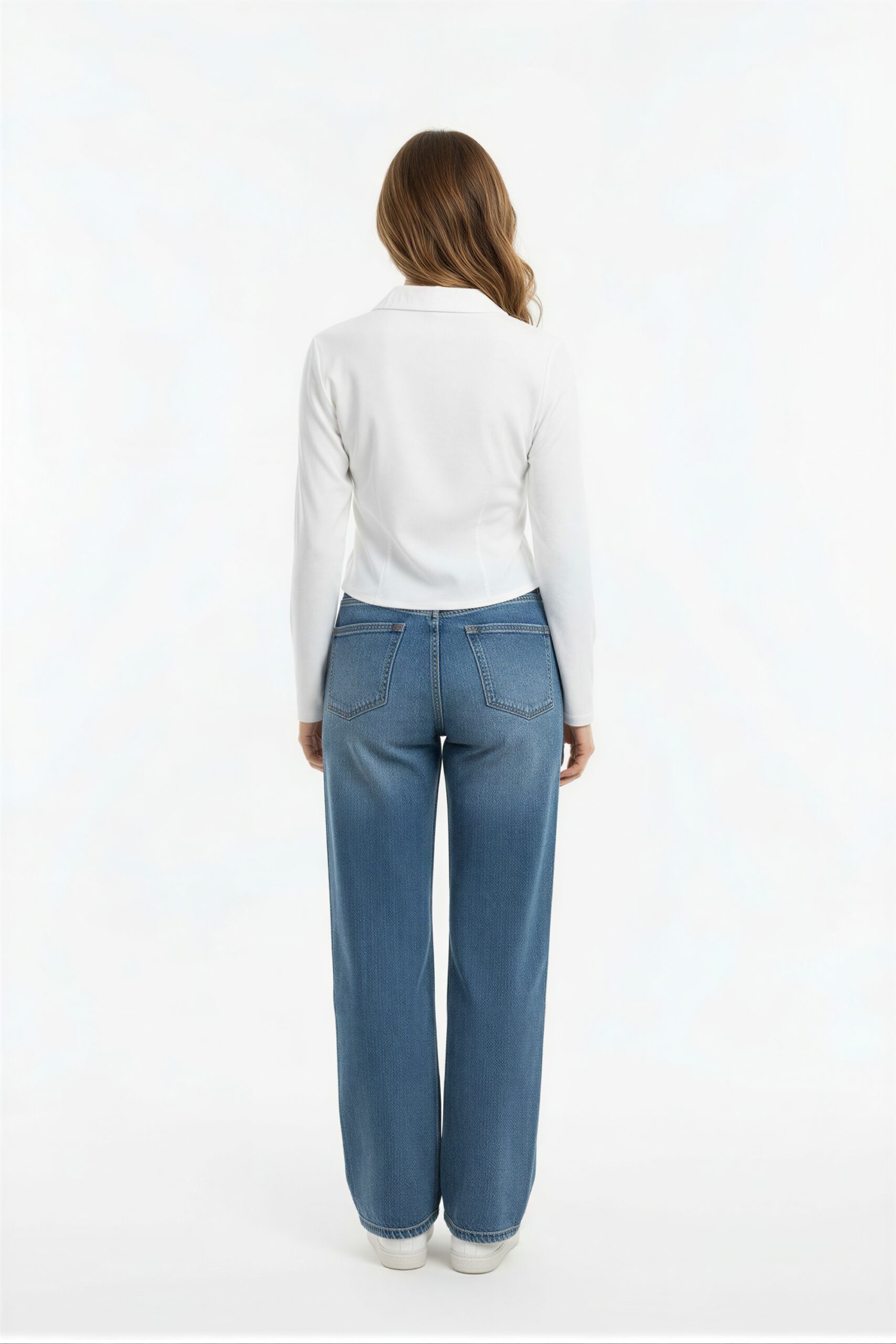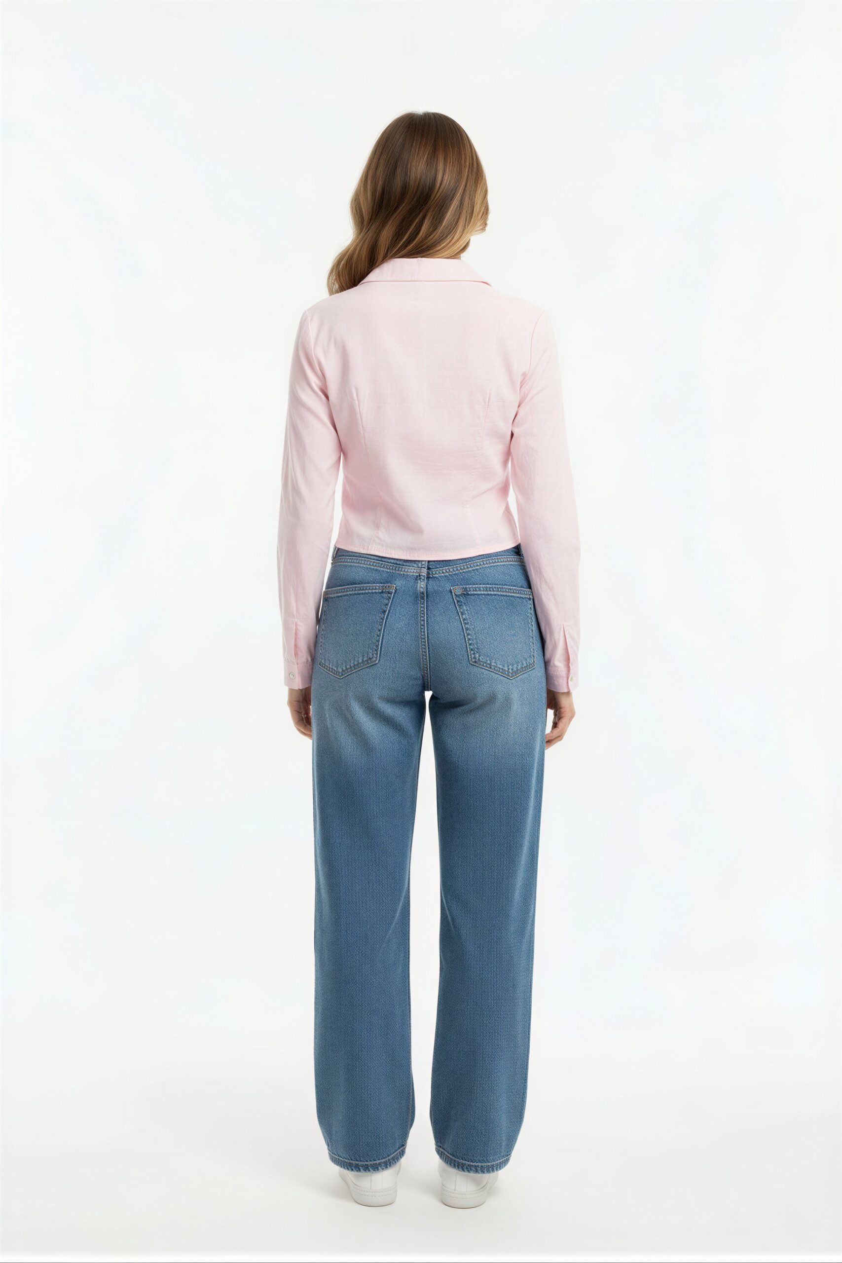 Blusa tipo camisa con cuello clásico manga larga con puño cierre frontal con botones corte a la cintura y ajuste definido