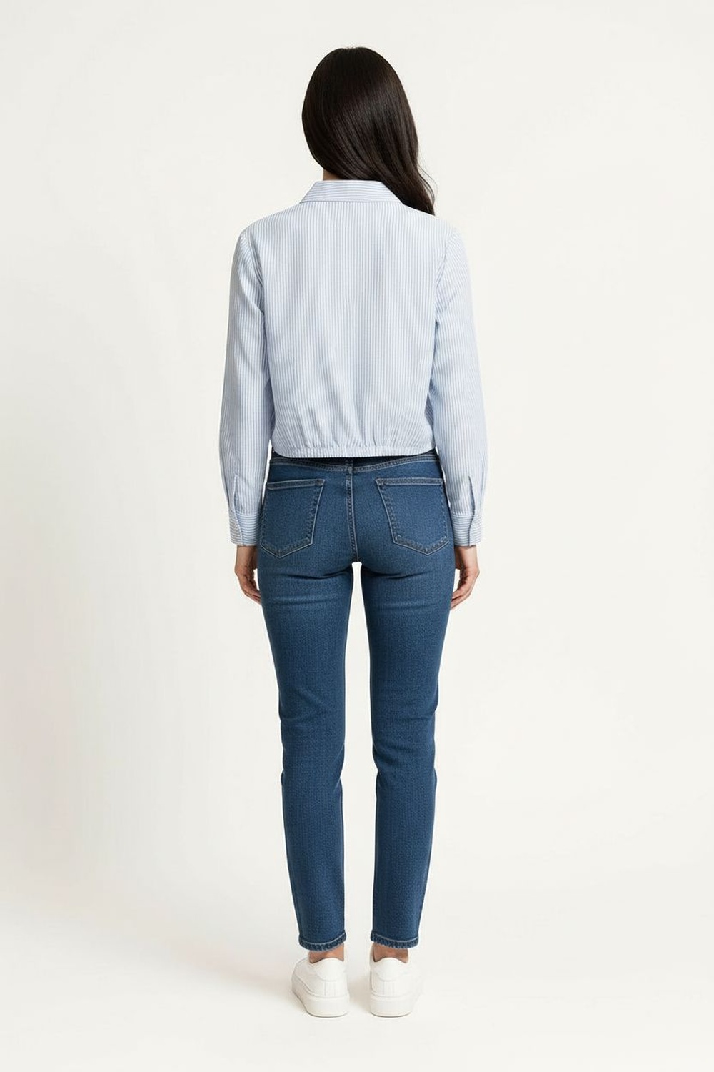 Blusa tipo camisera con cuello estructurado y botonadura frontal funcional, manga larga con puño definido que aporta ajuste preciso, corte crop que estiliza la silueta y actualiza la prenda clásica, confección en tejido ligero de tacto suave que brinda comodidad durante todo el día, acabado recto en bajo que permite un ajuste limpio y definido