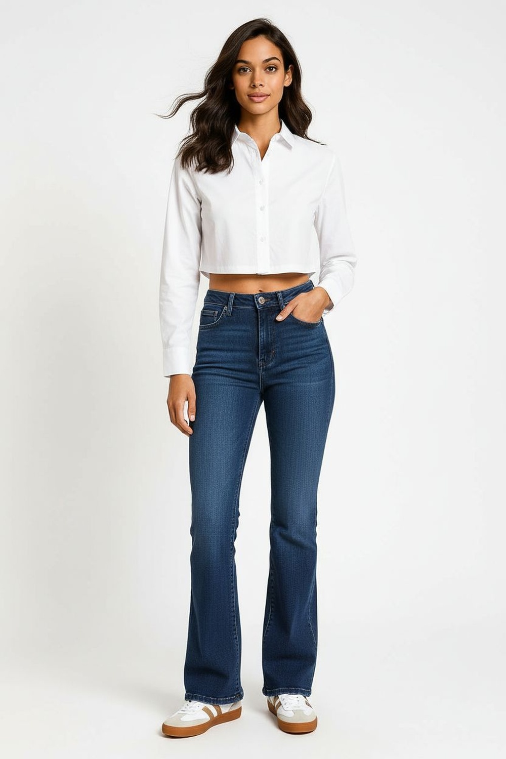 Blusa camisera de corte crop con cuello clásico que aporta estructura limpia y elegante, cierre frontal con botones que brindan practicidad y acabado pulido, manga larga con puño ajustado que ofrece comodidad y detalle refinado, confección en tela ligera de tacto suave que permite frescura y libertad de movimiento, ideal para combinar con faldas o pantalones de tiro alto en looks versátiles y sofisticados de temporada