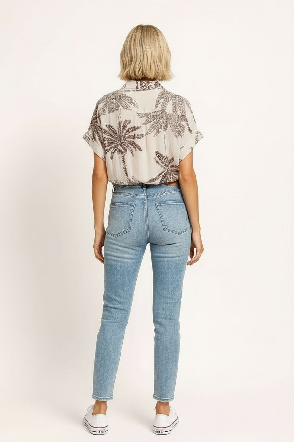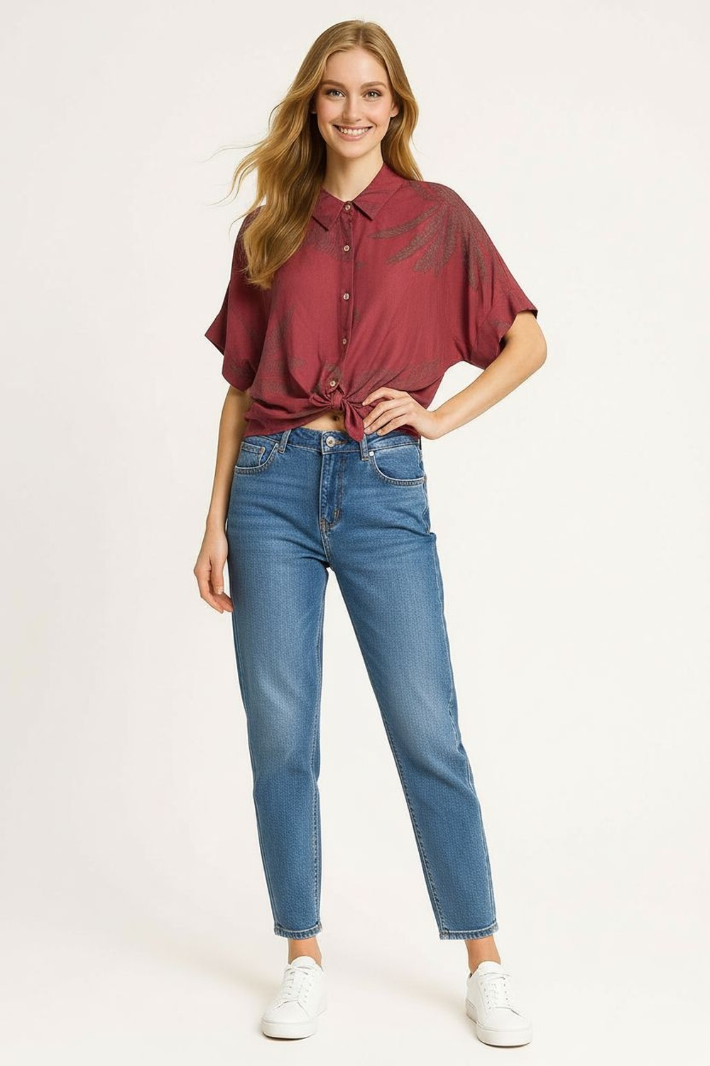 Blusa tipo camisera de manga corta con cuello clásico y botonadura frontal, corte recto con ajuste cómodo que permite movilidad, largo regular que equilibra la silueta, confección en tejido de tacto suave y transpirable, diseño funcional pensado para uso continuo