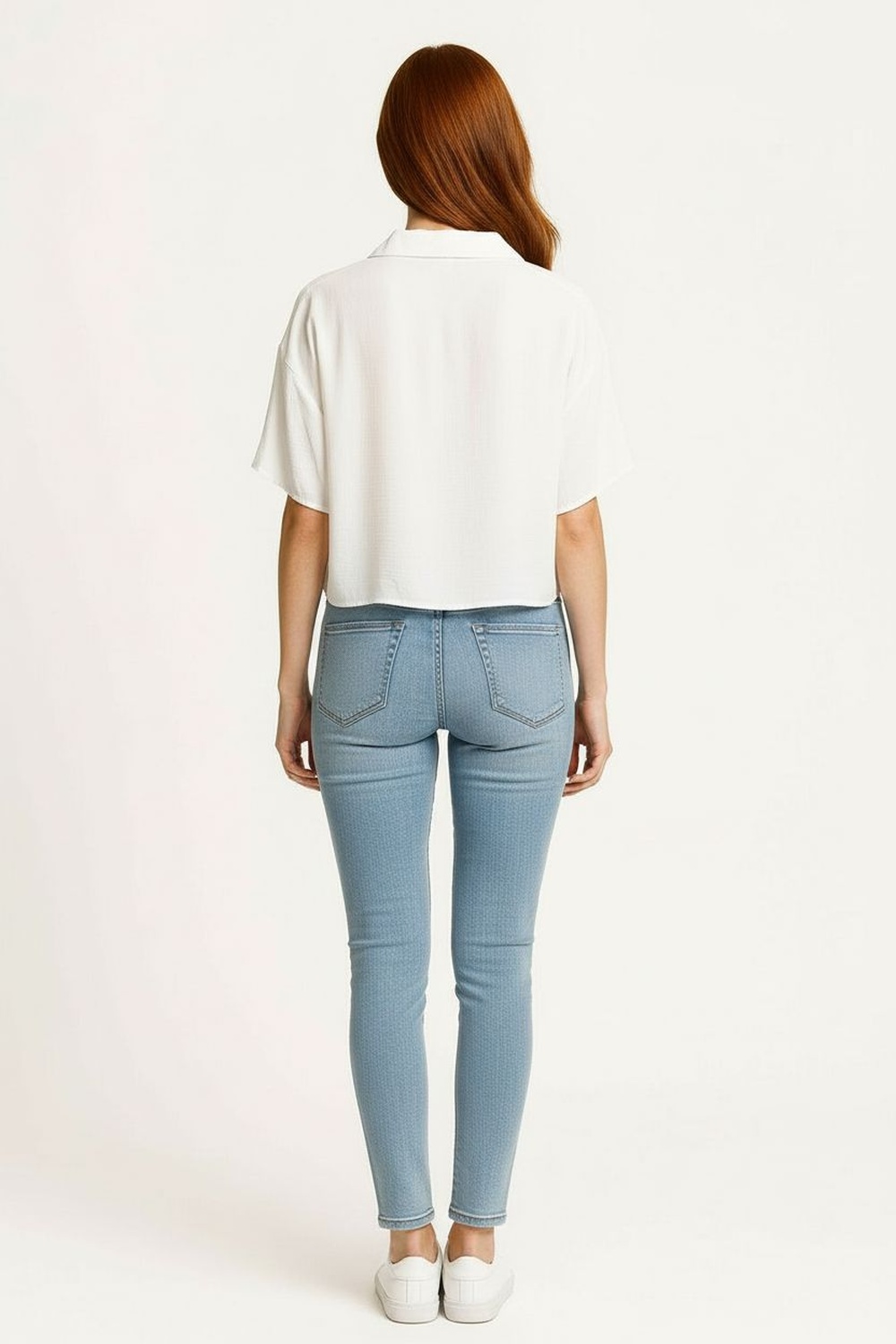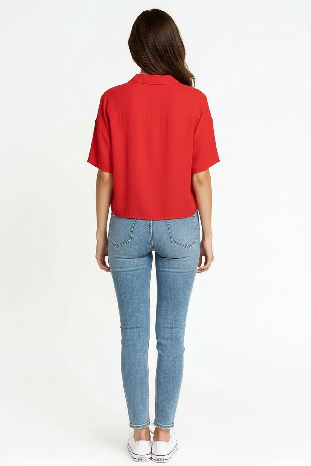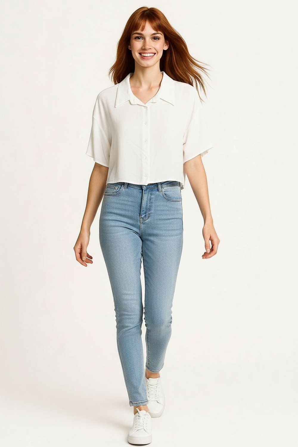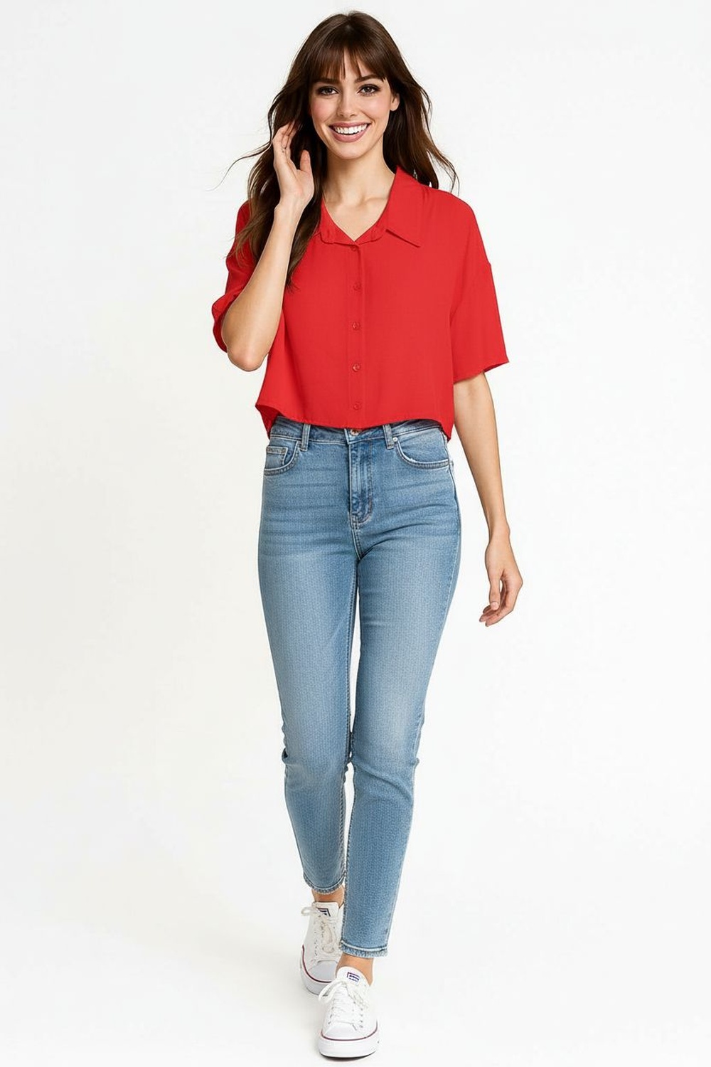 Blusa camisera de manga larga con botones al frente, cuello estructurado que brinda acabado pulido, corte corto que realza la figura, confección en tejido de caída suave que facilita movilidad