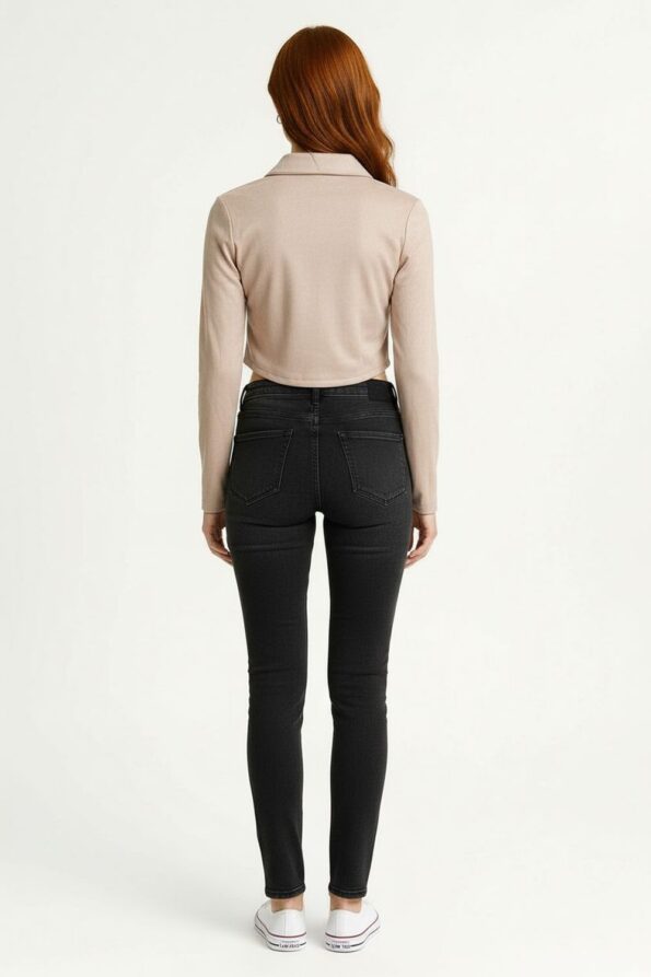 Blusa de manga larga con cuello camisero clásico que aporta elegancia, cortes en cintura que realzan la silueta y favorecen el ajuste, botonadura al frente que permite un cierre práctico y versátil, confección en tejido tipo gamuza suave que brinda comodidad y sofisticación, ideal para outfits modernos y combinaciones de temporada
