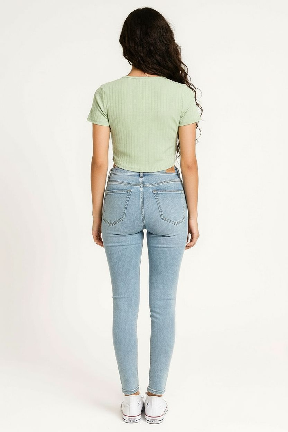 Playera de tejido rib con tirantes anchos y escote redondo que brinda ajuste cómodo al torso, diseño ajustado que define la silueta, detalle de faldón en la parte inferior que aporta movimiento y efecto visual estilizado, confección elástica que permite libertad de movimiento, acabado suave al tacto para uso diario