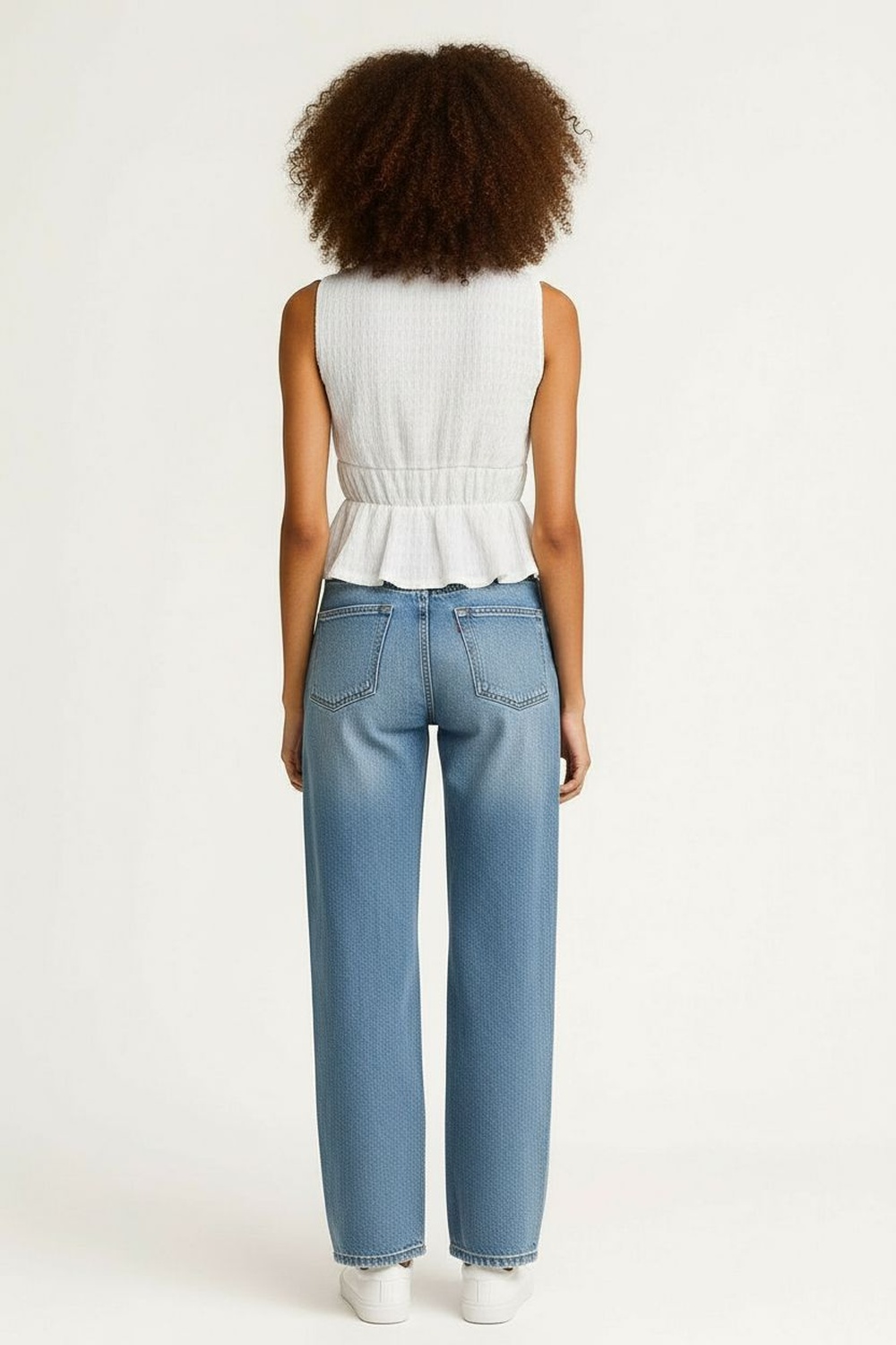 Pantalón de mezclilla con pretina de botón y cierre, bolsillos funcionales al frente y parte posterior, corte amplio en pierna que brinda comodidad, detalle de desgaste con aberturas discretas