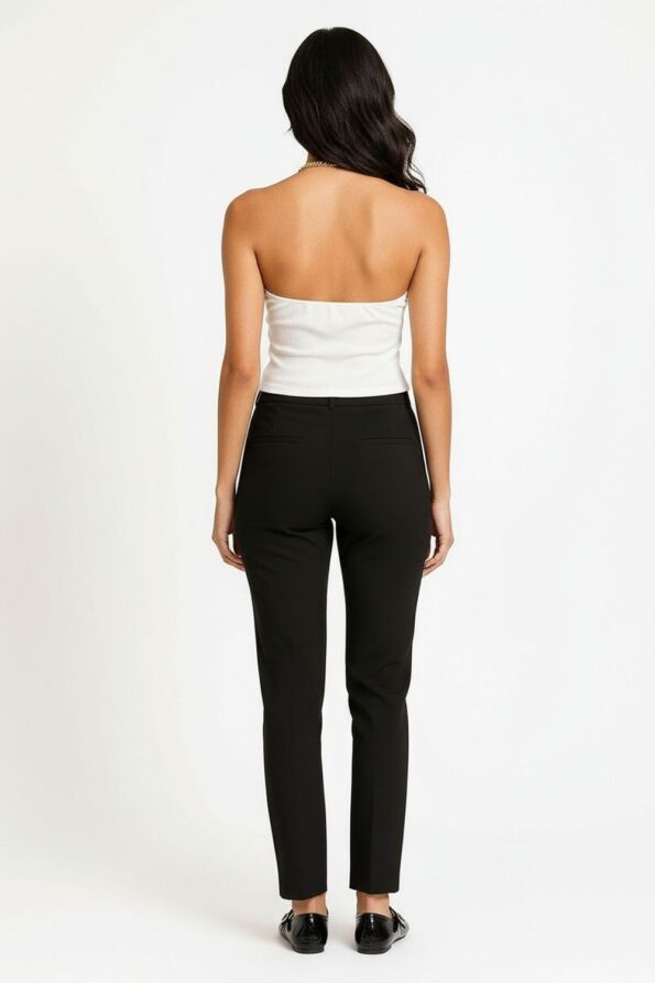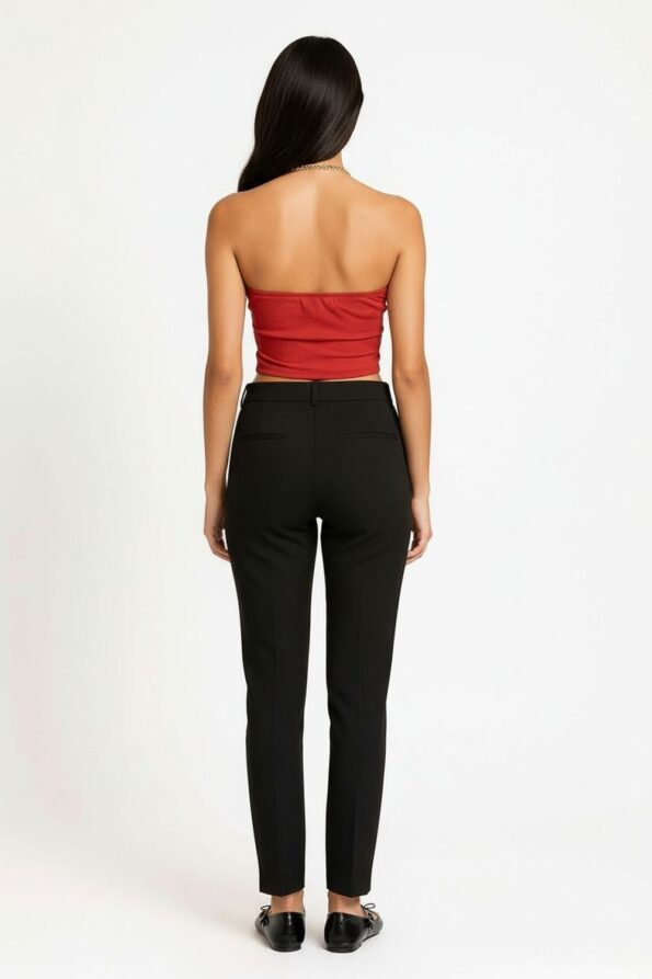 Body con tirantes delgados ajustables que permiten un calce personalizado, escote en V con estructura definida que realza la figura, cortes verticales al frente que estilizan la silueta, ajuste ceñido que aporta seguridad y comodidad, confección en tela elástica con acabado brillante que asegura movilidad, ideal para outfits nocturnos o combinaciones modernas de temporada