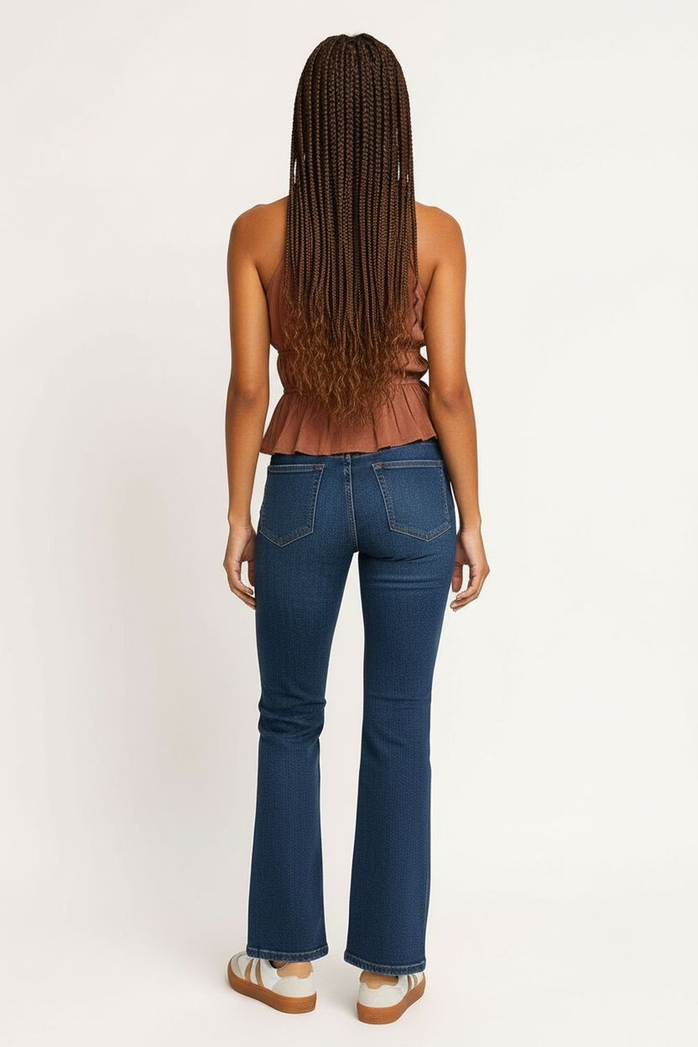 Pantalón de tiro alto con pretina elástica que brinda ajuste firme y cómodo, silueta entallada en cadera con apertura gradual en bajo, largo completo que estiliza la pierna, confección en tejido rib con elasticidad controlada que mantiene la forma durante el uso