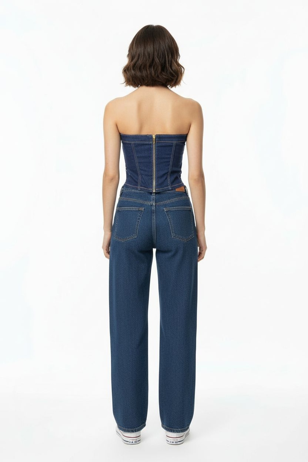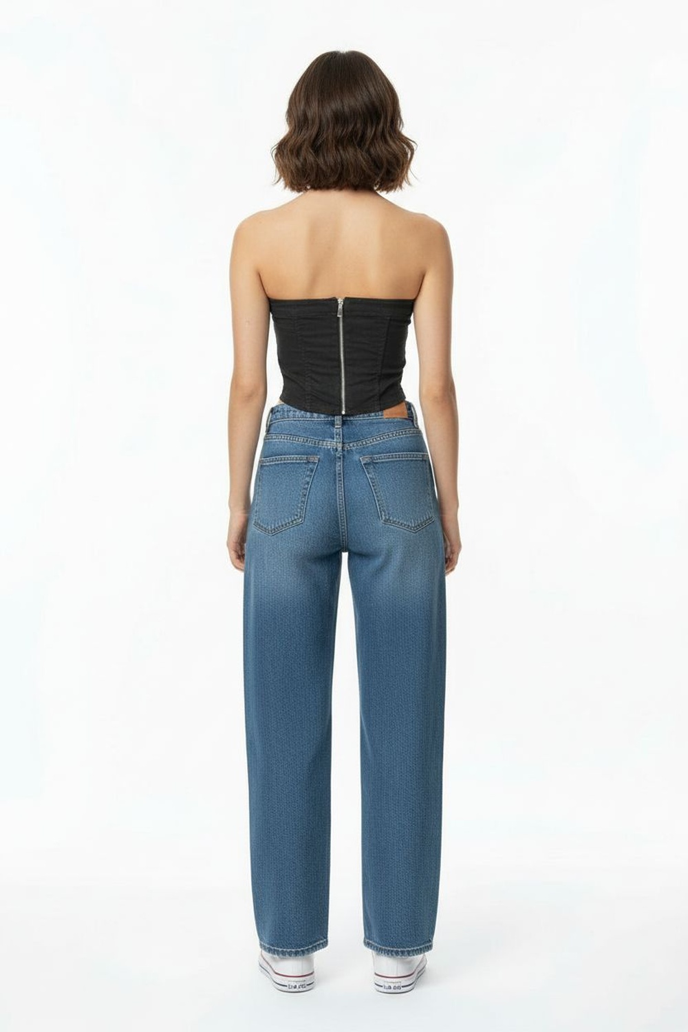 Blusa tipo straple con tirantes delgados, ajuste al cuerpo, estructura recta, acabado limpio, largo a la cintura