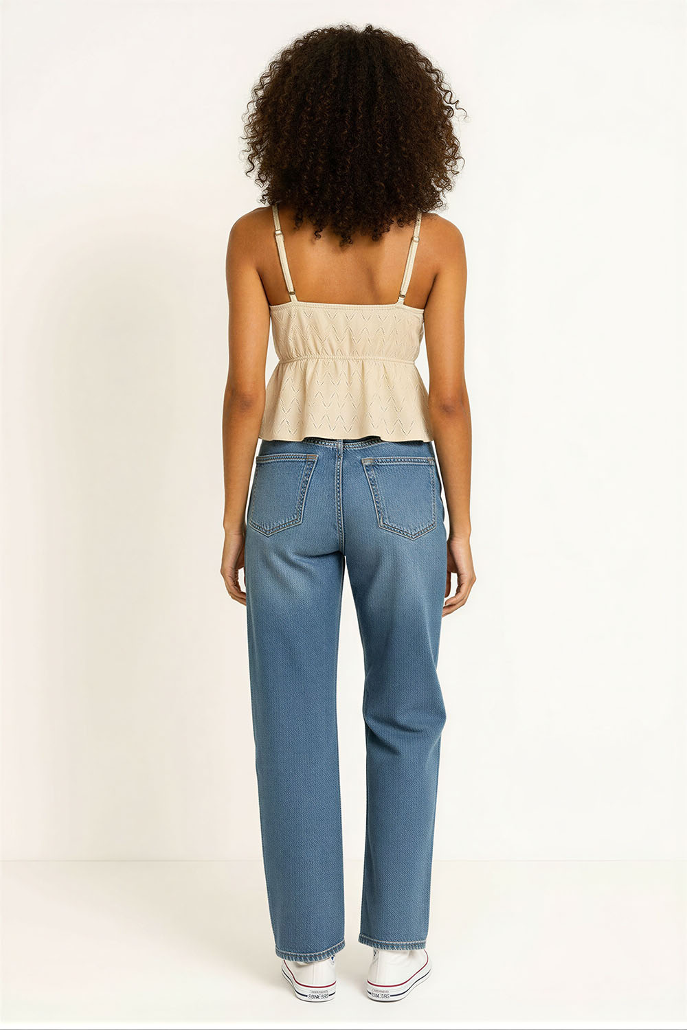 Jeans de tiro alto que estilizan la cintura, corte recto que brinda comodidad en piernas, diseño clásico con bolsillos funcionales al frente y parte posterior, pretina con cierre y botón que asegura buen ajuste, confección en mezclilla resistente que permite uso diario con confort