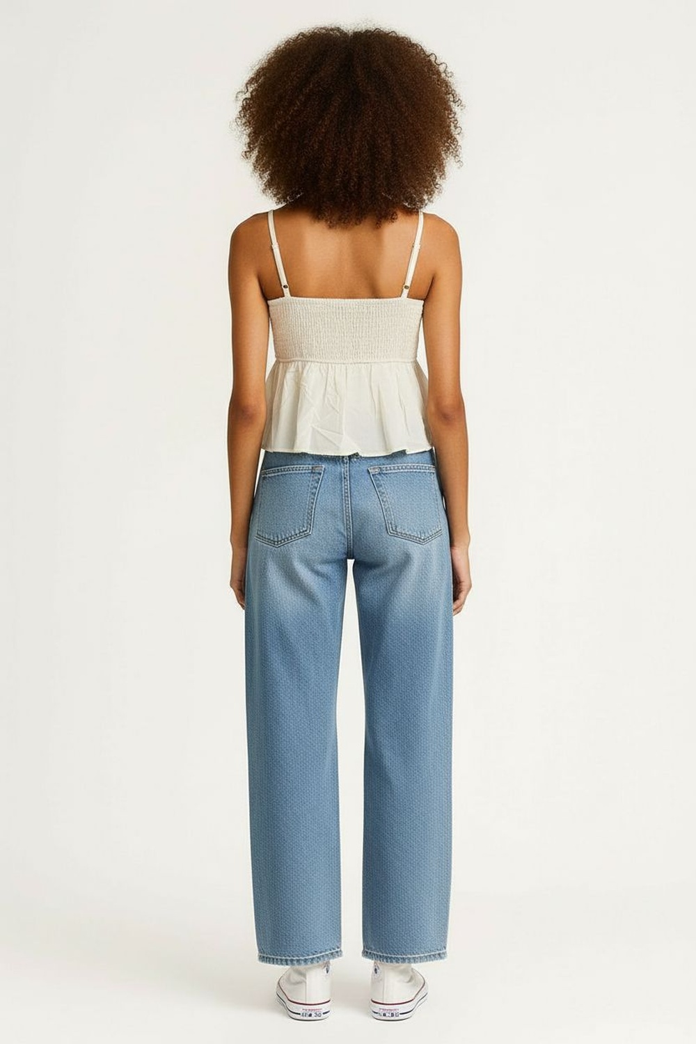 Blusa de tejido ligero, tirantes delgados, escote en v, corte debajo del busto, caída amplia, ajuste superior al cuerpo