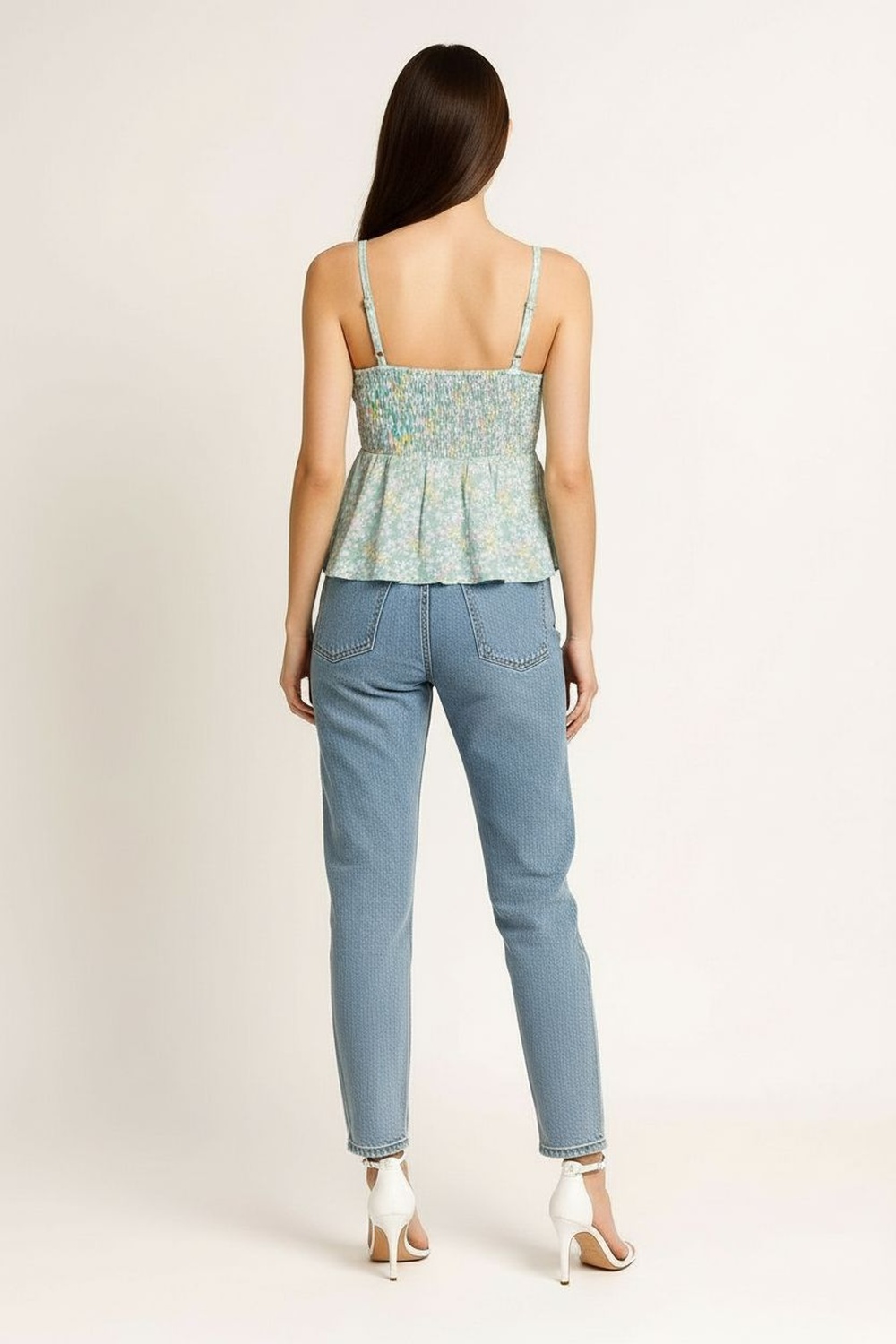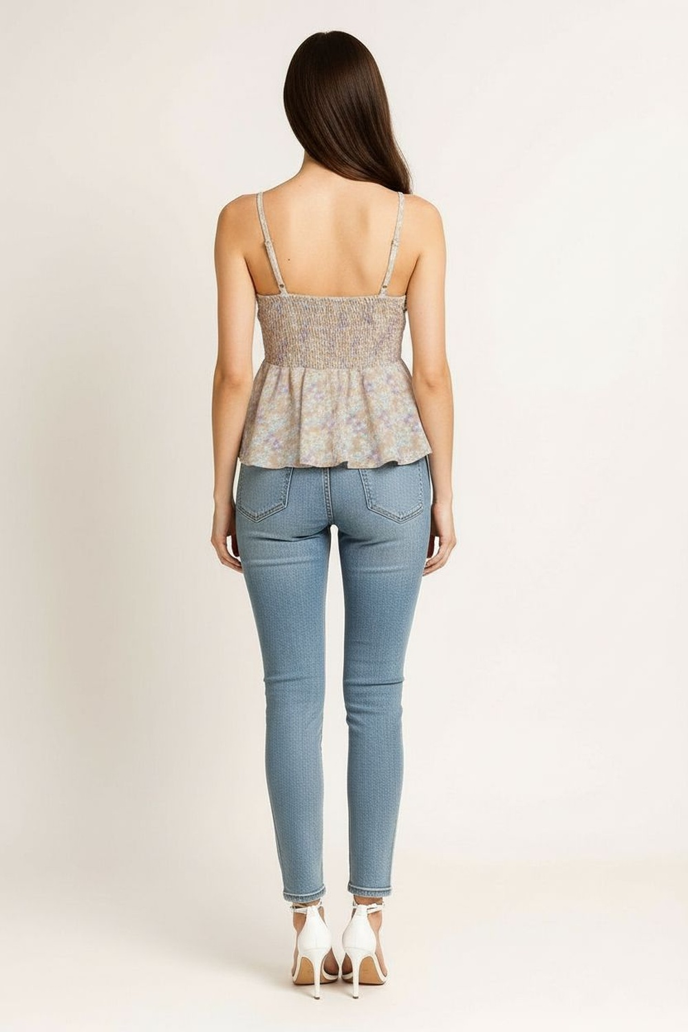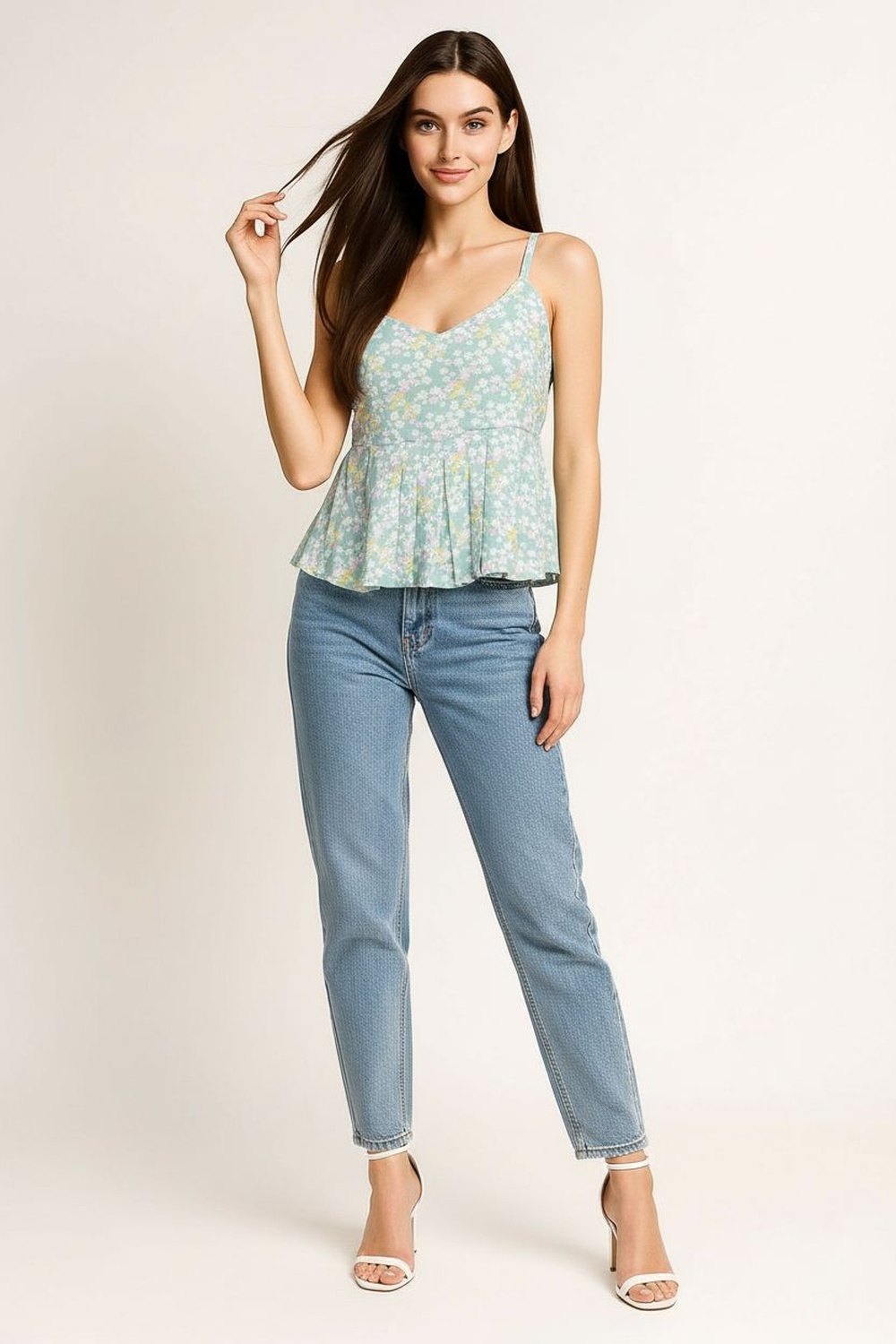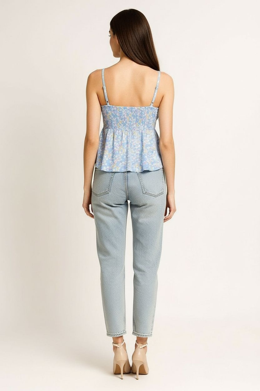 Blusa de tirantes con escote en v ajuste en parte superior corte amplio con vuelo ligero caída suave estructura fluida