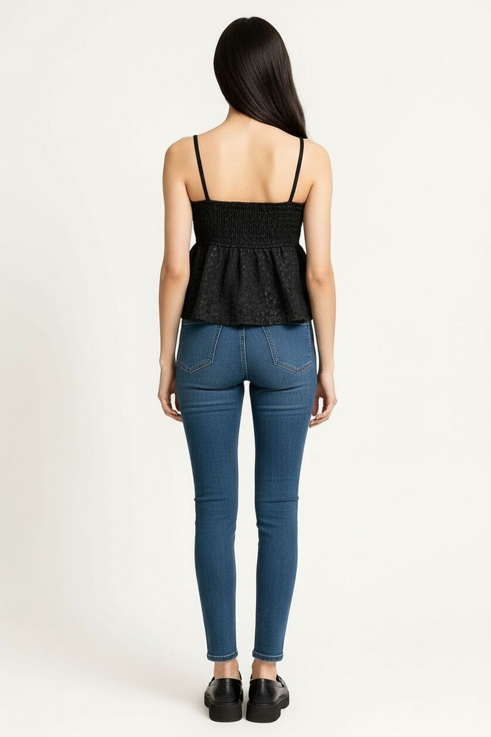 Blusa de tirantes delgados con escote recto y corte amplio bajo el busto, diseño fluido que brinda comodidad durante el uso, largo corto con terminación limpia, confección ligera con textura suave y caída natural