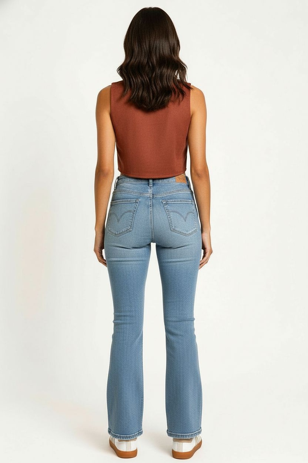 Chaleco corto con escote cuadrado y corte estructurado que define la silueta con precisión, botonadura de pasta en tono a juego que aporta calidez visual, diseño sin mangas ideal para usar solo o en capas, silueta entallada perfecta para resaltar cintura y crear contraste, prenda versátil que mezcla estilo sastre con vibra urbana, ideal para looks casual chic o de oficina reinventados