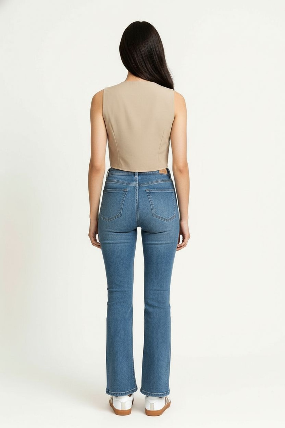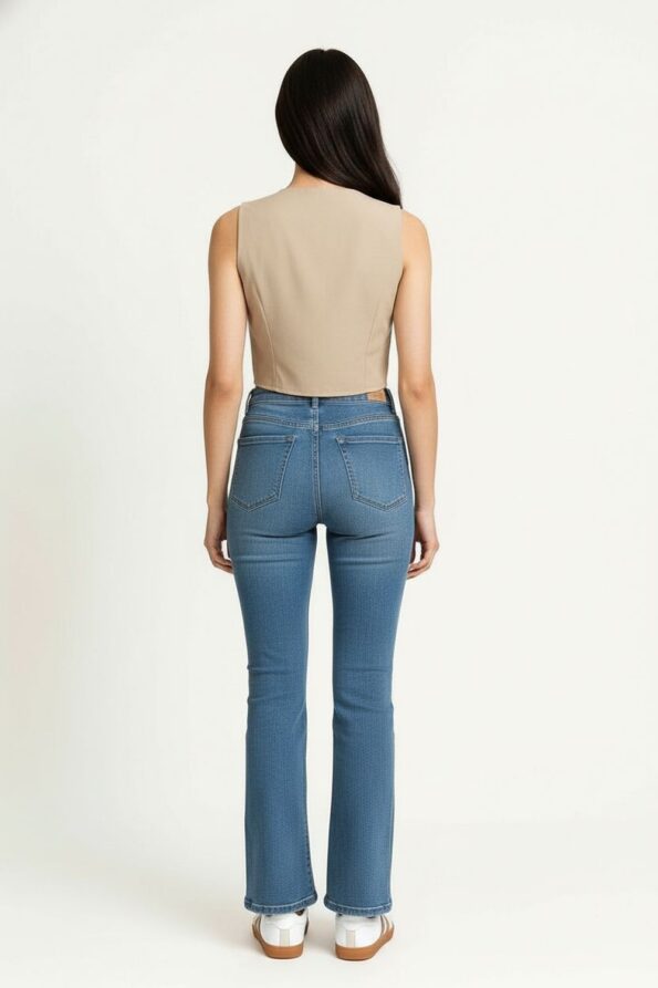 Chaleco corto con escote en V profundo que estiliza el cuello, botones al frente que aportan practicidad y detalle decorativo, bajo en punta que alarga visualmente la silueta, sin mangas para mayor frescura y fácil combinación con diferentes prendas, confeccionado en tejido estructurado que brinda soporte y mejor caída, ideal para looks modernos y combinaciones versátiles de temporada