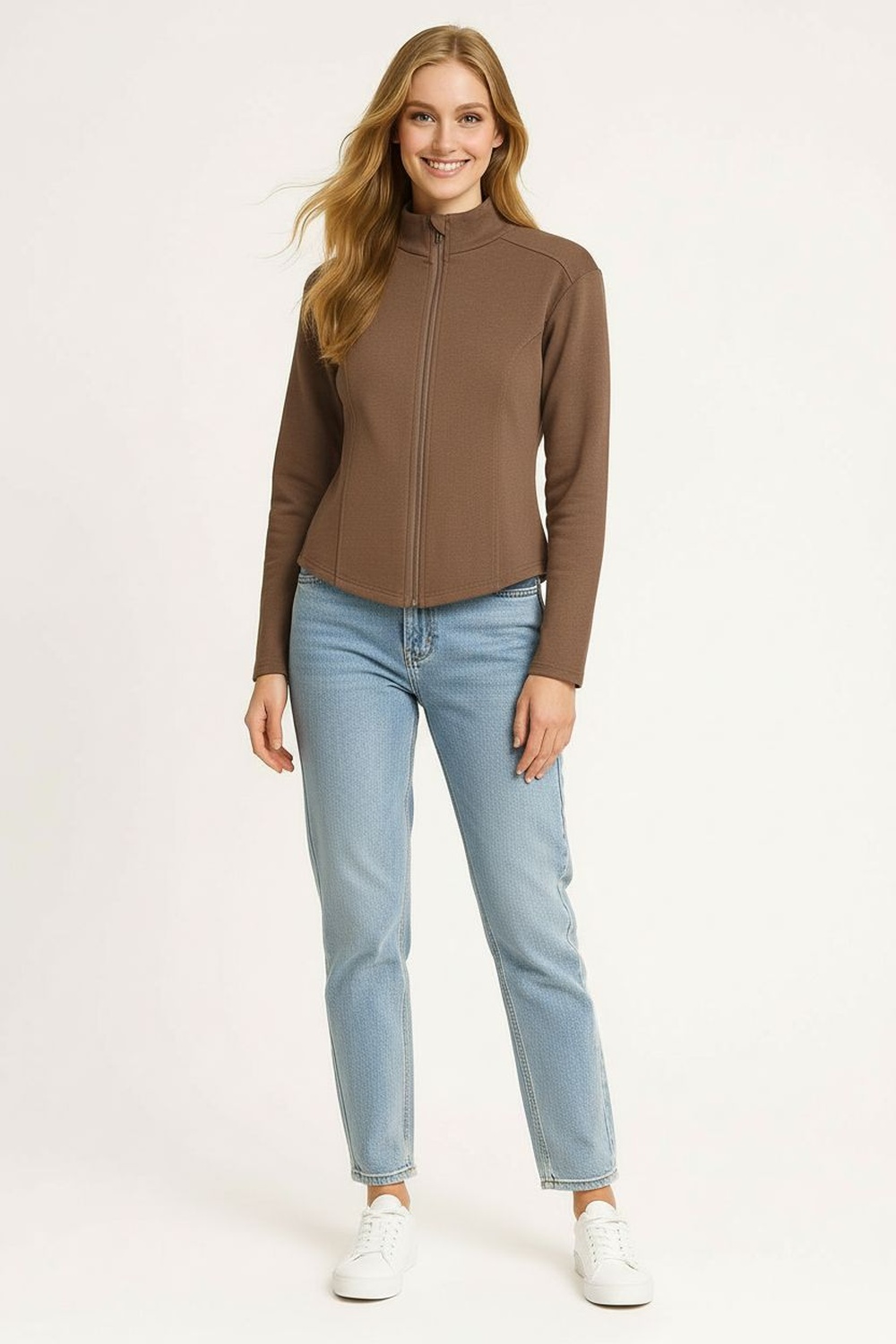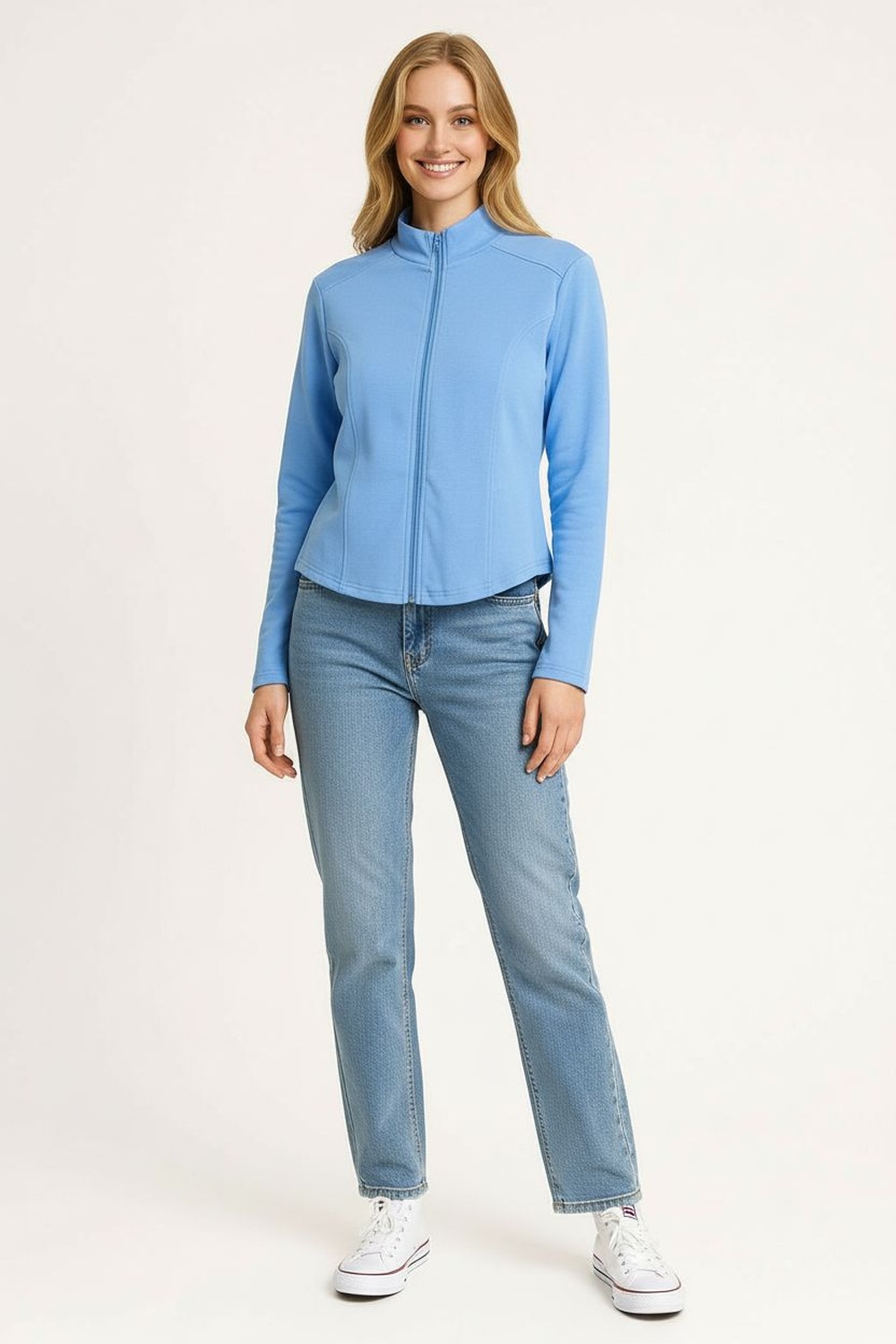 Chamarra con cierre frontal metálico que brinda ajuste seguro, cuello clásico estructurado que aporta presencia, mangas largas con terminación recta que permite movilidad cómoda, bolsillos frontales aplicados que añaden funcionalidad, confección en material firme que mantiene silueta