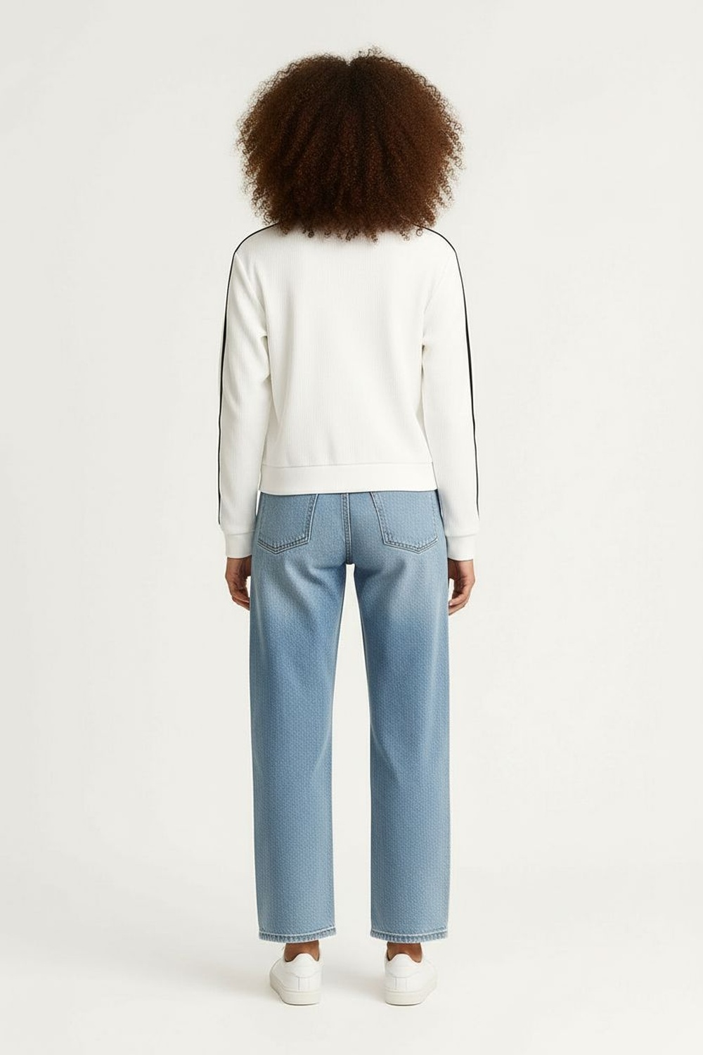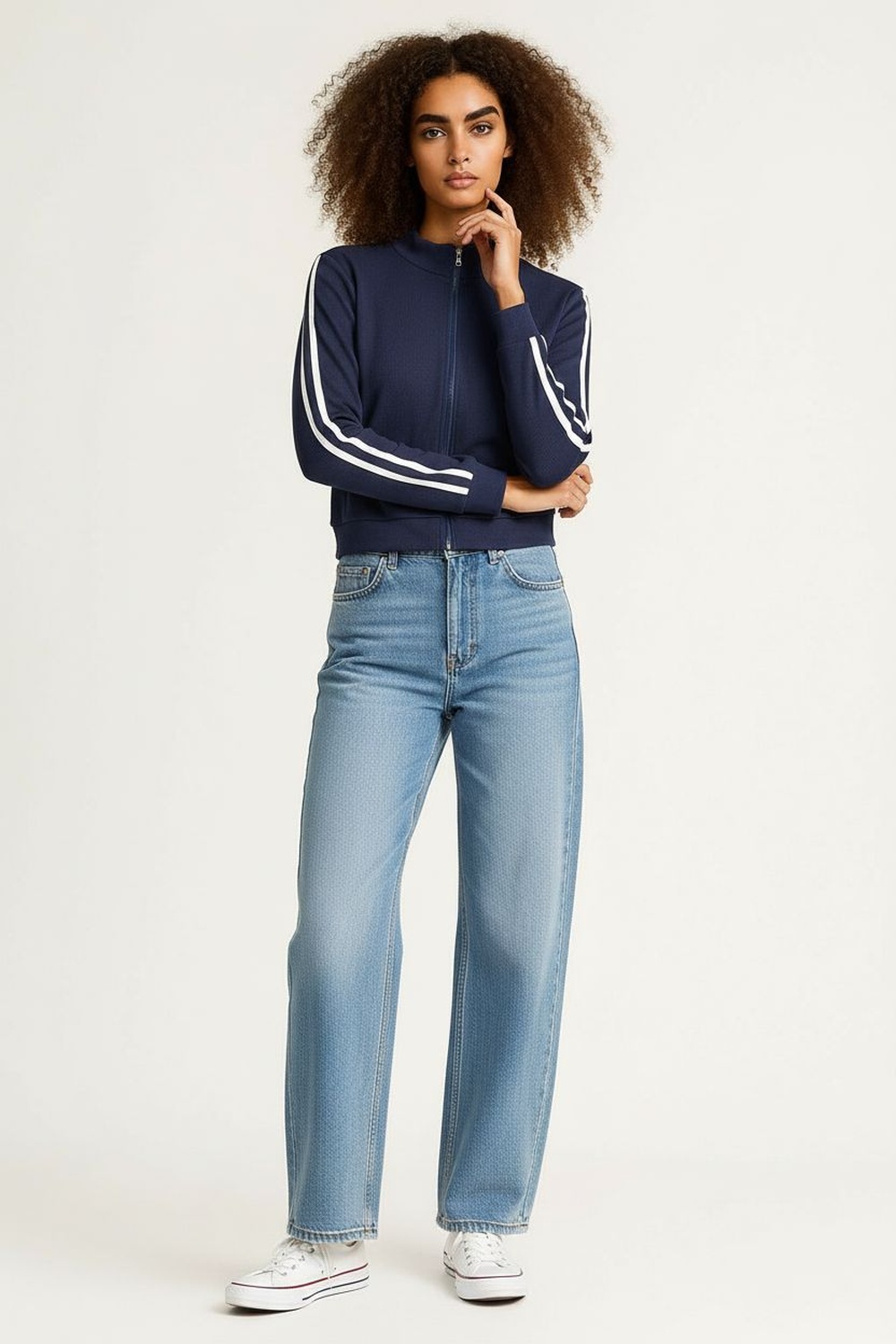 Chamarra de tejido canalé con cuello subido que aporta estructura, cierre frontal completo que permite regular la apertura, manga larga con ajuste suave al brazo, construcción elástica que se adapta al movimiento, corte a la cintura que acentúa la forma natural del cuerpo