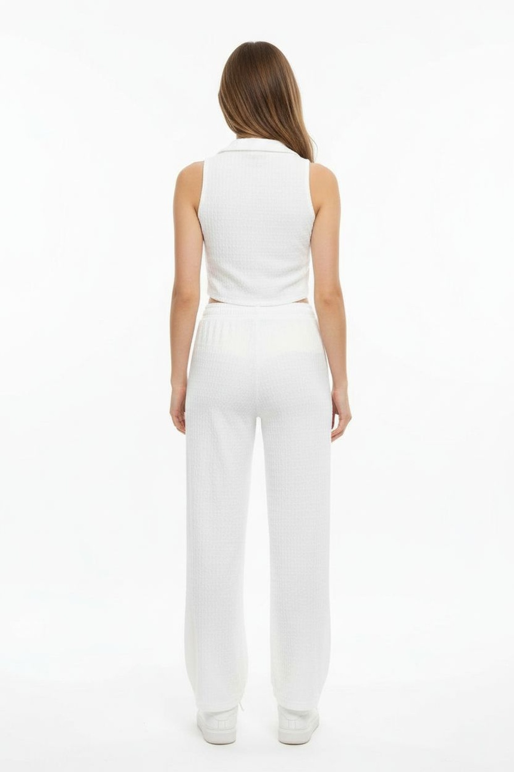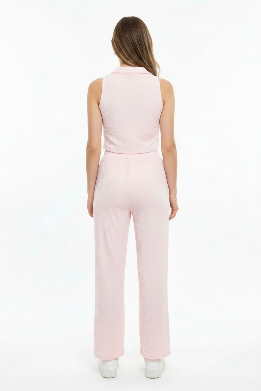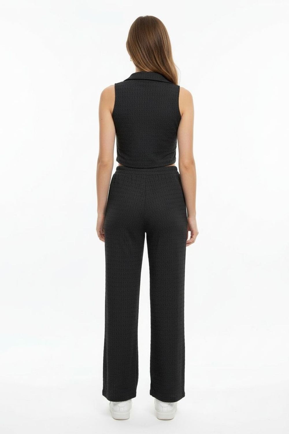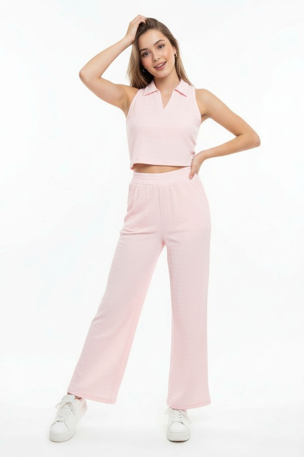 Conjunto de dos piezas top sin manga con escote estructurado y pantalón de pierna amplia con cintura cómoda y caída ligera
