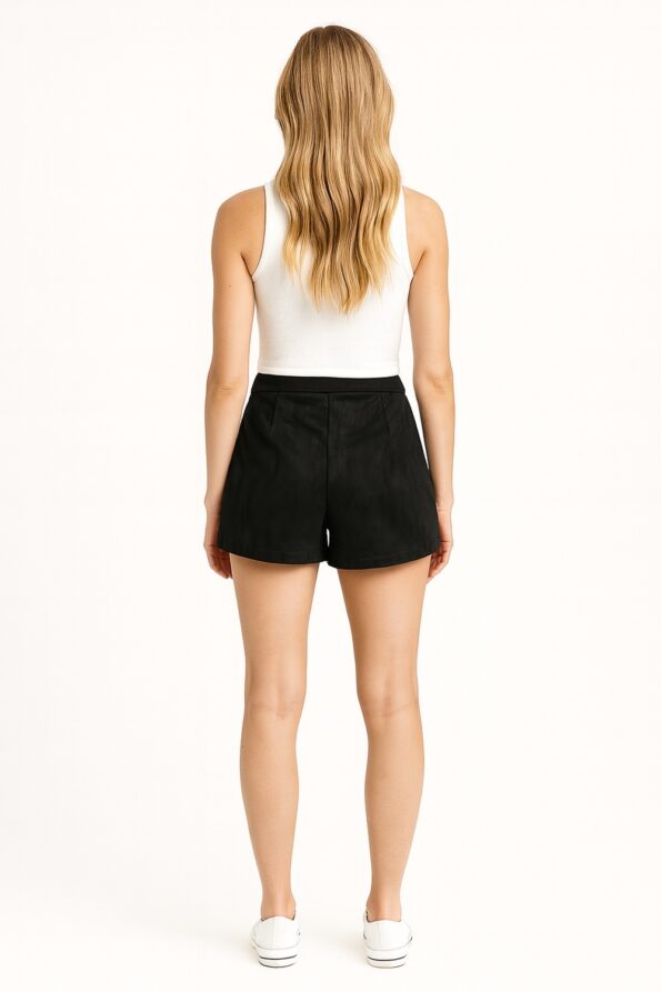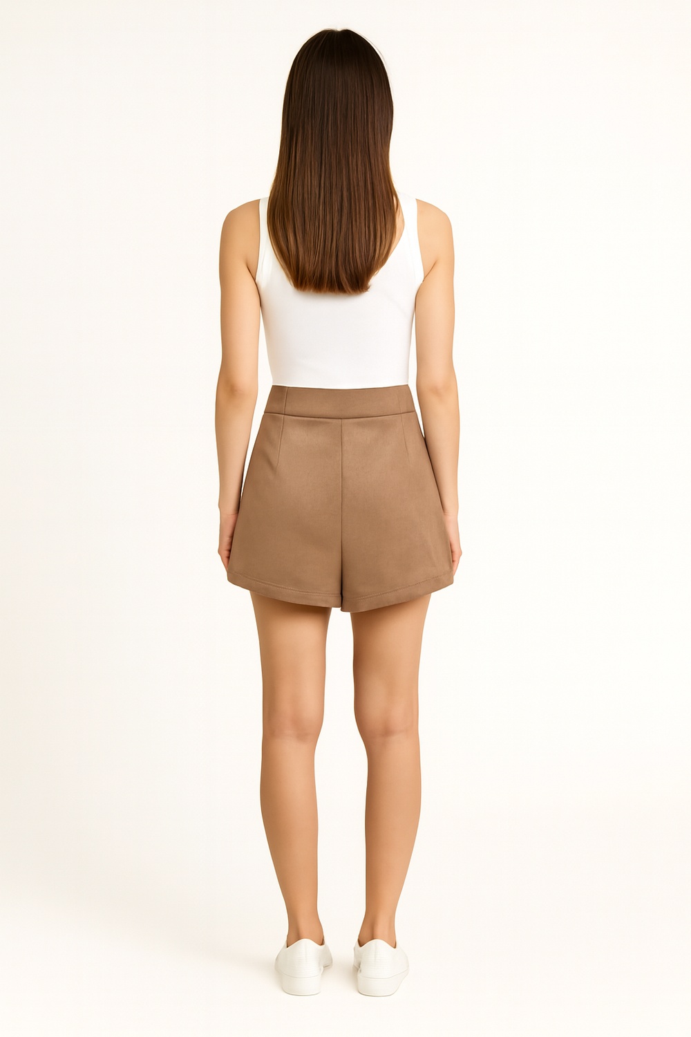 Minifalda con diseño tipo short interno para mayor comodidad, pretina ancha con pasadores, pliegues frontales que aportan estructura y movimiento, confección de tacto suave y acabado pulcro