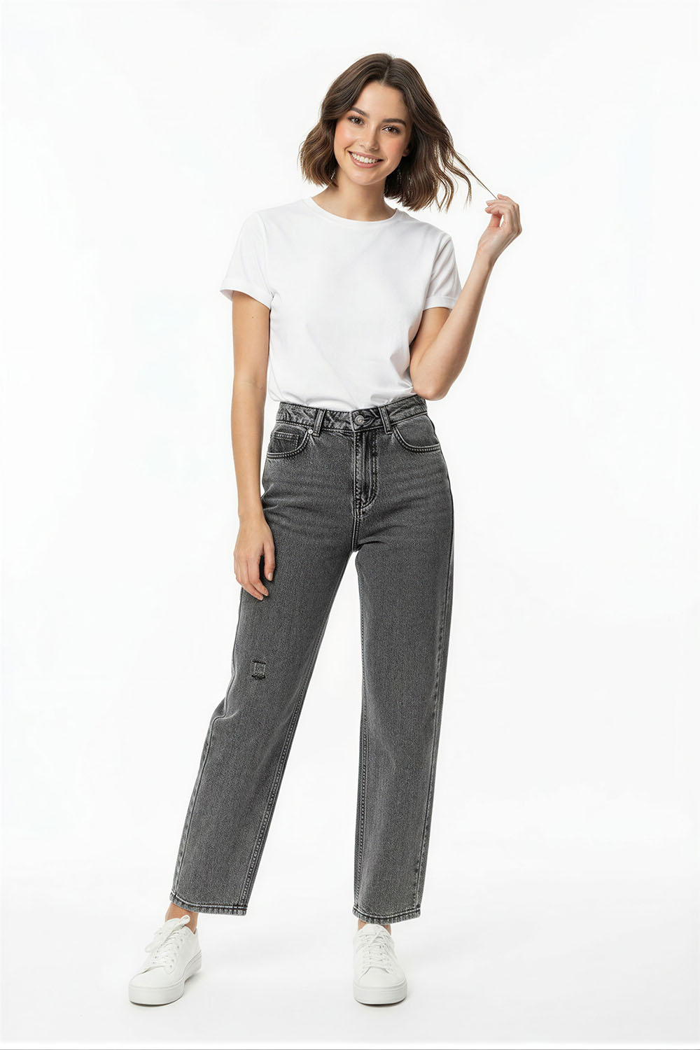JEANS RECTOS TIRO ALTO CORTE RELAJADO