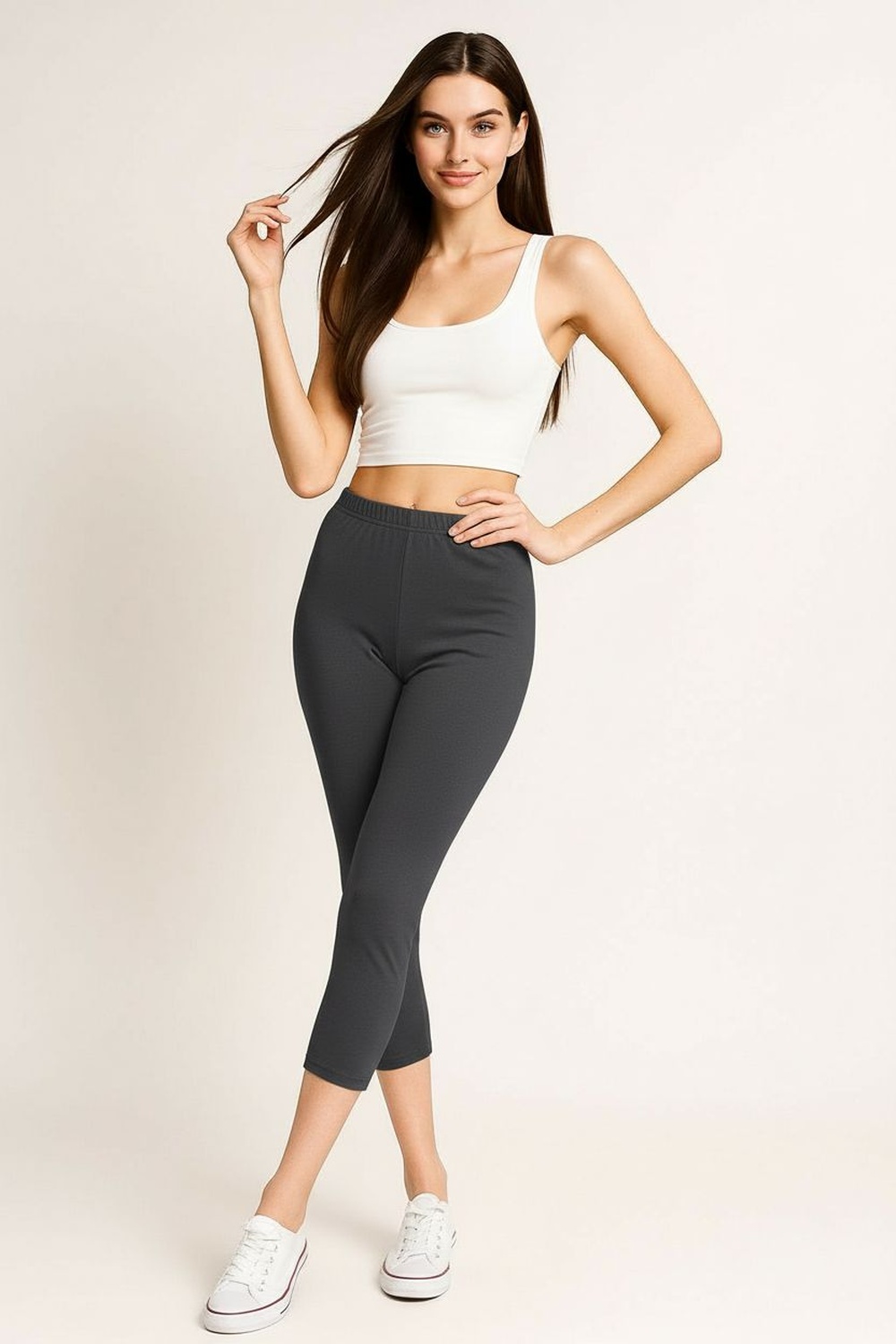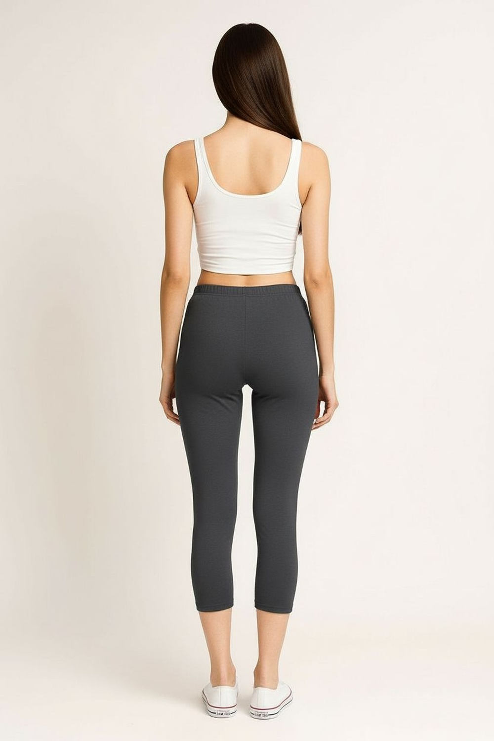 Leggings con cintura amplia pretina elástica diseño liso ajuste al cuerpo largo debajo de rodilla confección ligera