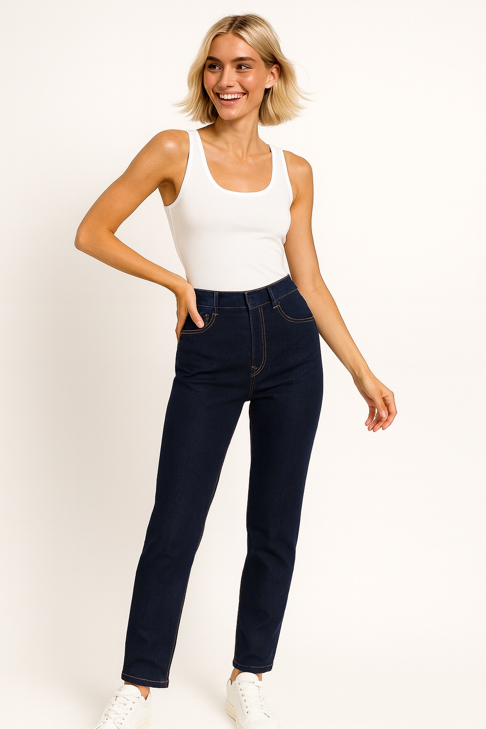 Leggins de mezclilla con tiro alto que estiliza la cintura y ofrece comodidad diaria, pretina ancha que brinda ajuste seguro y firme, corte ceñido que realza la silueta y favorece un look moderno, bolsillos funcionales en parte trasera que aportan practicidad y detalle clásico, confección en tejido elástico que se adapta al cuerpo permitiendo libertad de movimiento, ideal para outfits casuales y versátiles de temporada