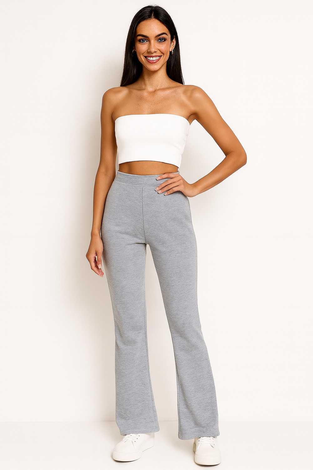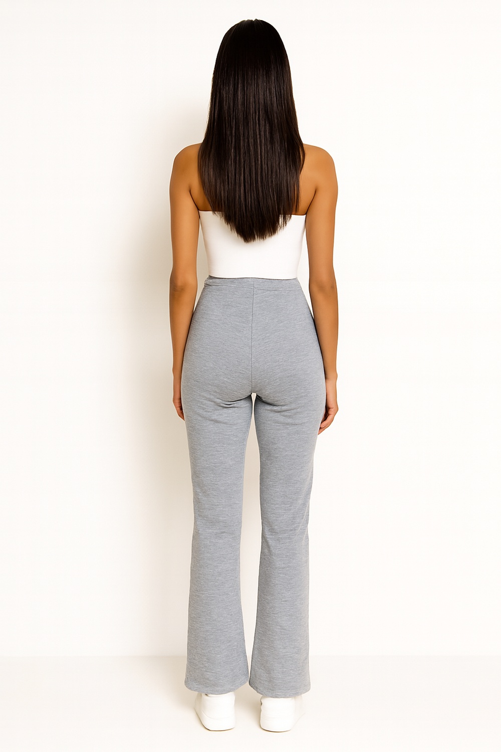 Pantalón de tiro alto con pretina ancha que brinda soporte y ajuste cómodo, corte amplio en pierna que aporta libertad de movimiento, largo completo que estiliza la figura, confección en tejido rib con elasticidad controlada que mantiene la forma, acabados limpios que elevan la presentación