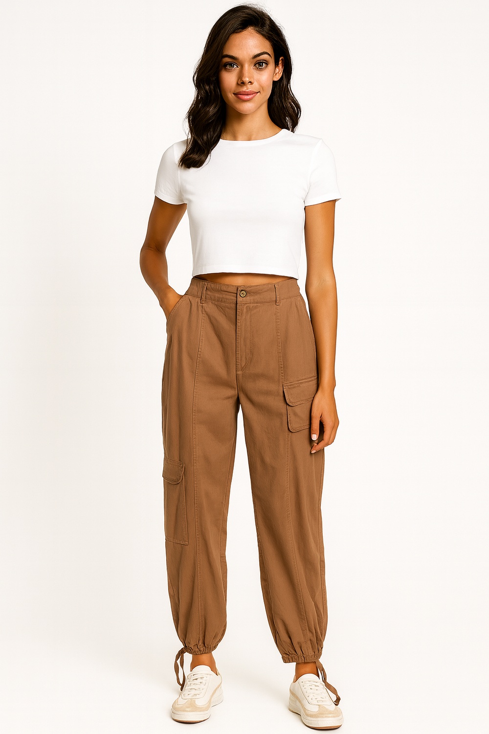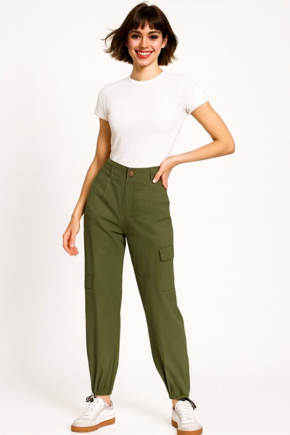 Pantalón de gabardina con tiro medio que aporta ajuste cómodo y seguro, diseño con bolsas tipo cargo laterales que brindan practicidad y estilo urbano, corte recto que favorece la movilidad y ofrece un look moderno, pretina con trabillas para cinturón que permite mayor ajuste y personalización, confección en tela resistente que asegura durabilidad y confort, ideal para outfits casuales y combinaciones de temporada