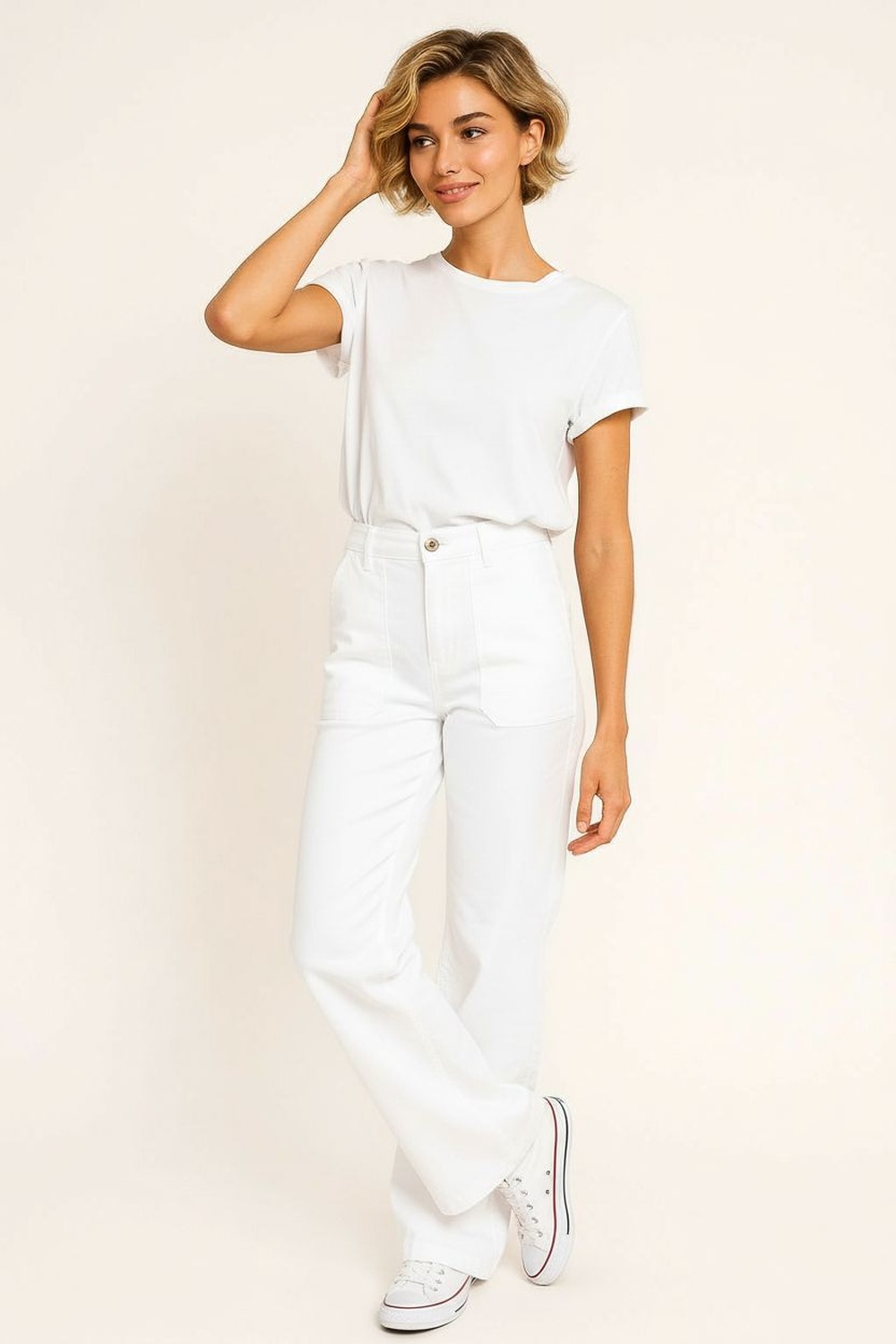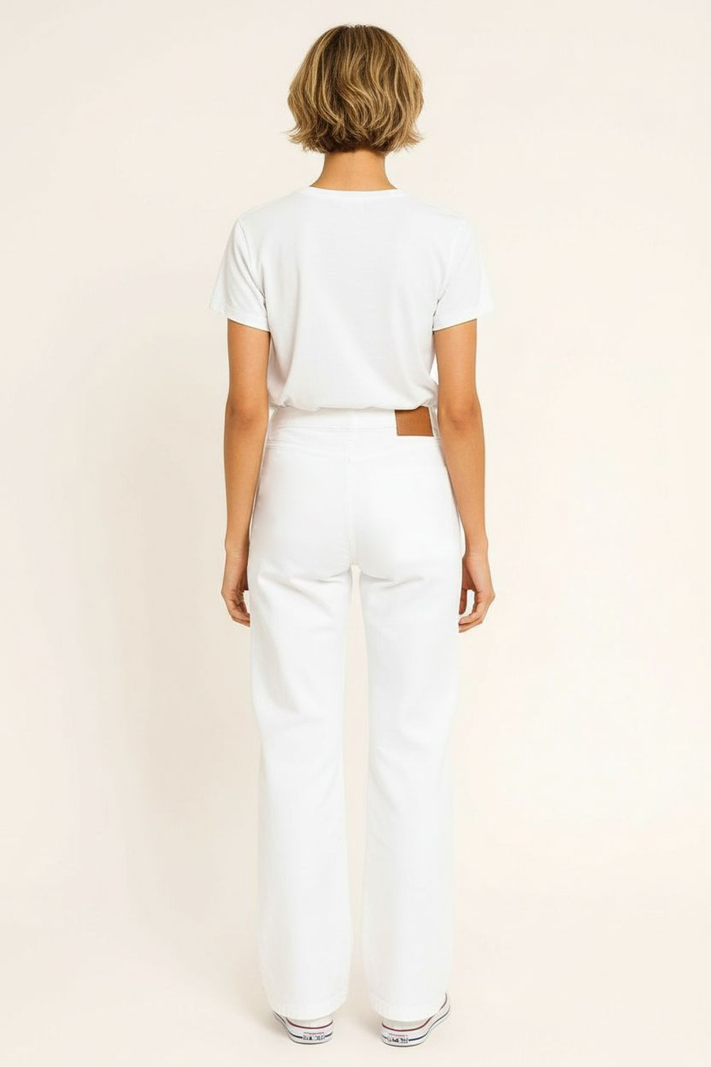 Pantalón de tiro alto con corte suelto y caída recta, confección en tejido ligero que permite movilidad, pretina con resorte y jareta ajustable que brinda ajuste cómodo, largo completo que estiliza la silueta, terminaciones limpias en bastilla para un acabado prolijo