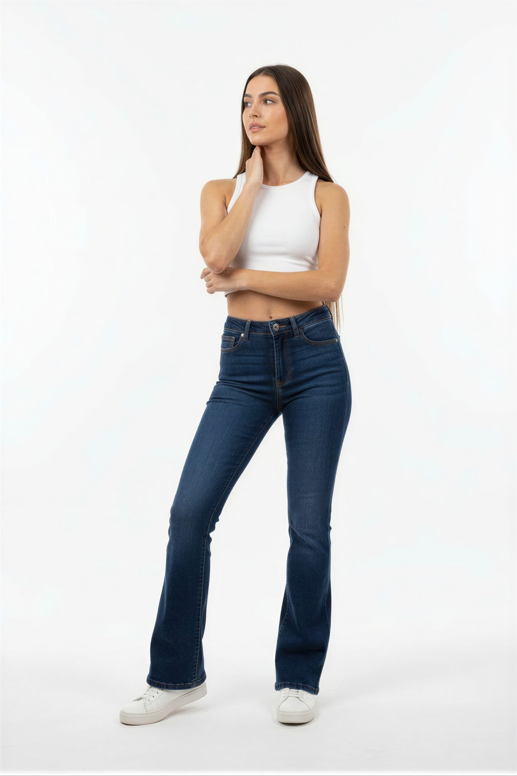 Jeans con pretina con botón y cierre, tiro alto, corte amplio en pierna, bolsillos funcionales, estructura resistente, largo al tobillo