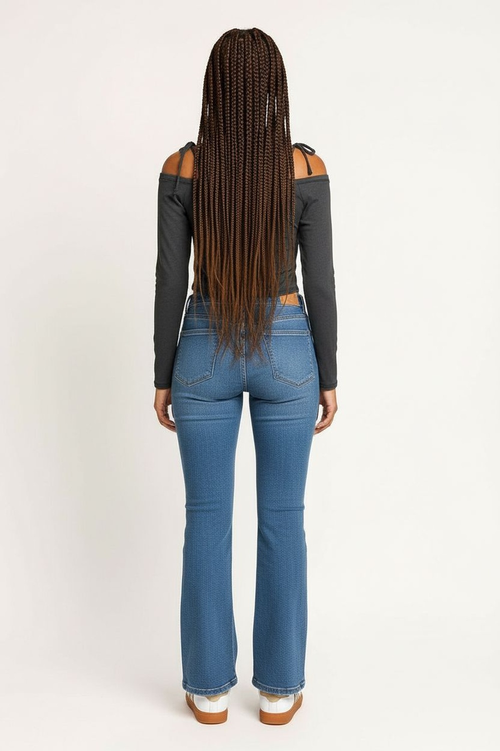 Jeans de tiro medio con corte amplio que brinda libertad de movimiento, bolsas laterales tipo cargo con tapa que aportan funcionalidad práctica, pretina con trabillas para asegurar distintos tipos de cinturón, pernera recta que estructura la caída del tejido, costura visible que refuerza cada panel, longitud completa que favorece distintas alturas