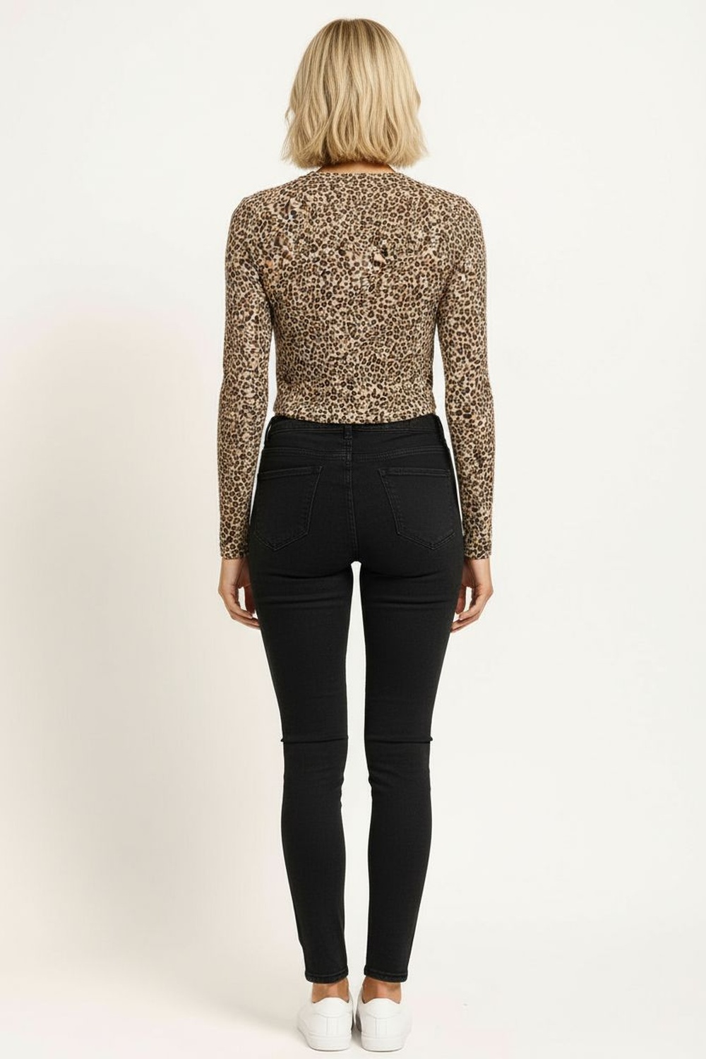 Blusa cruzada con escote en V pronunciado, corte ajustado que define la figura, frunces sutiles en el frente que aportan textura, manga larga ceñida con terminación limpia y tela suave que se adapta al movimiento