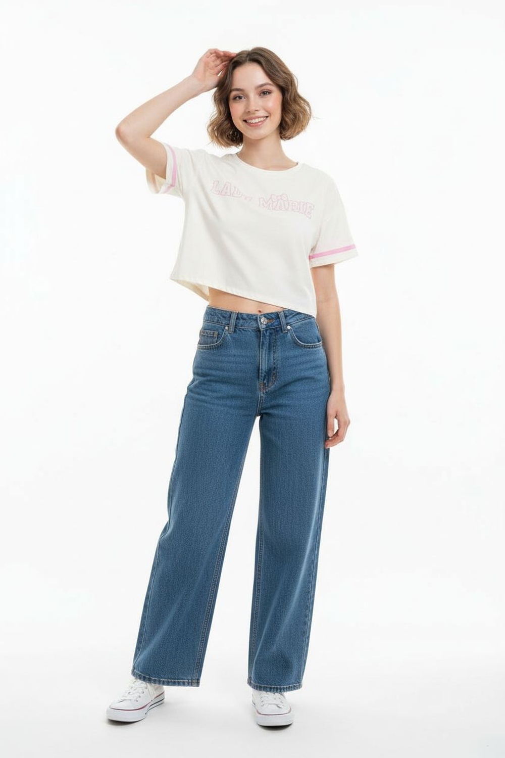 Pantalón de mezclilla con pretina de botón y cierre, cinco bolsillos funcionales, corte recto con ajuste favorecedor, confección resistente para uso continuo