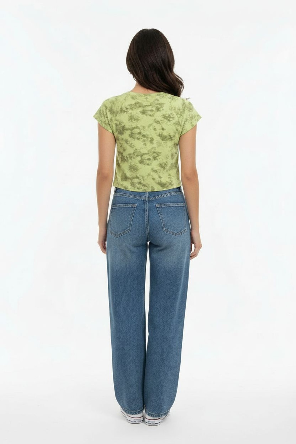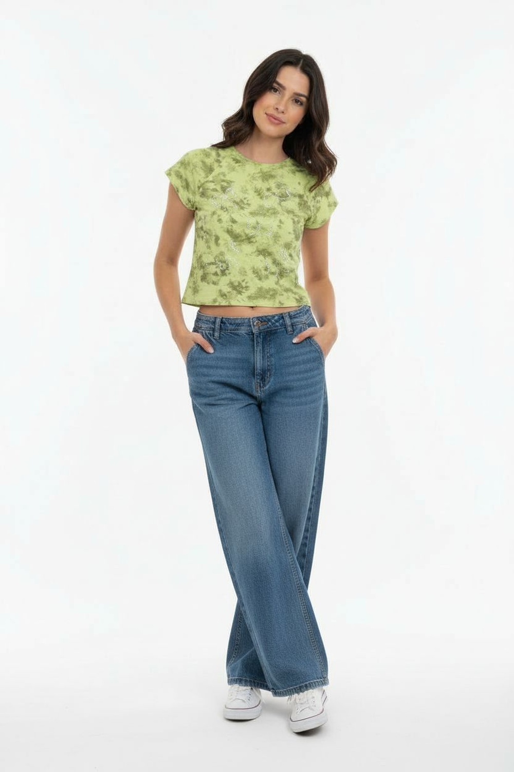 Top corto de manga corta cuello redondo tejido tipo rib ajuste ceñido confección elástica y cómoda