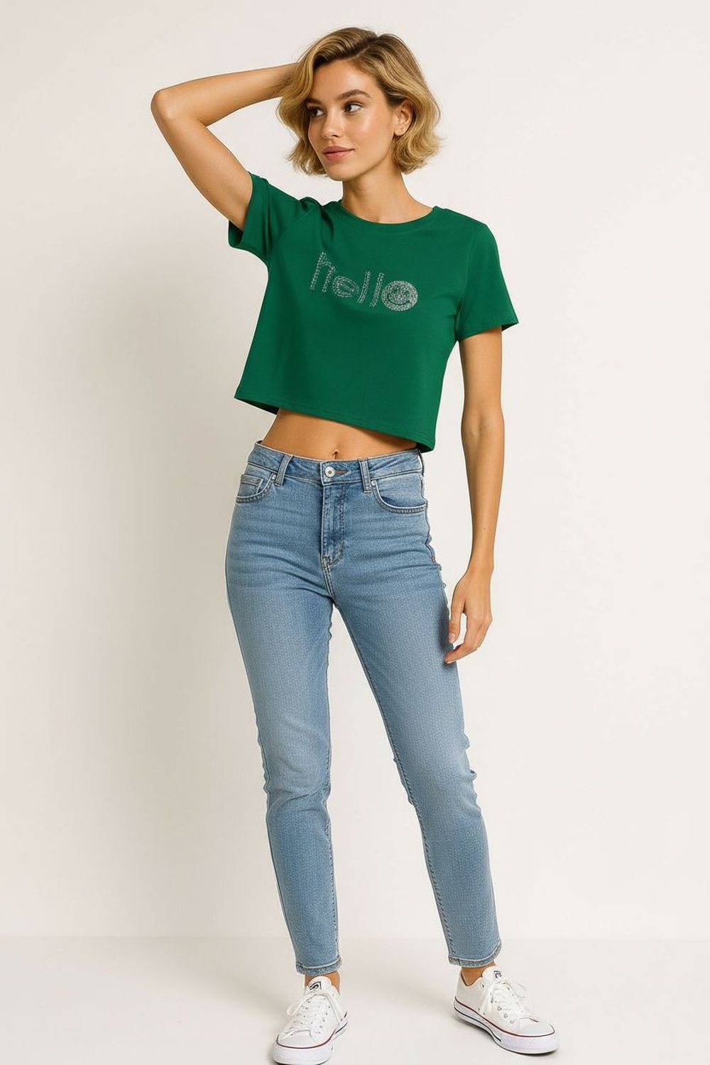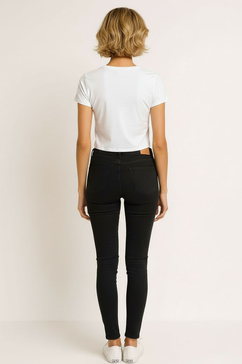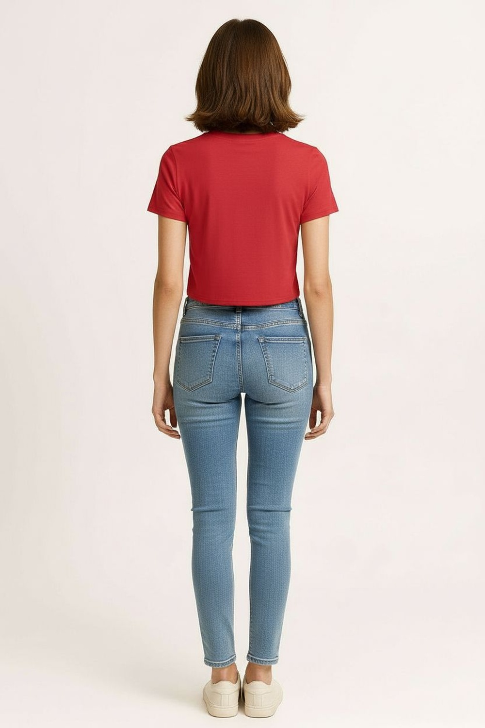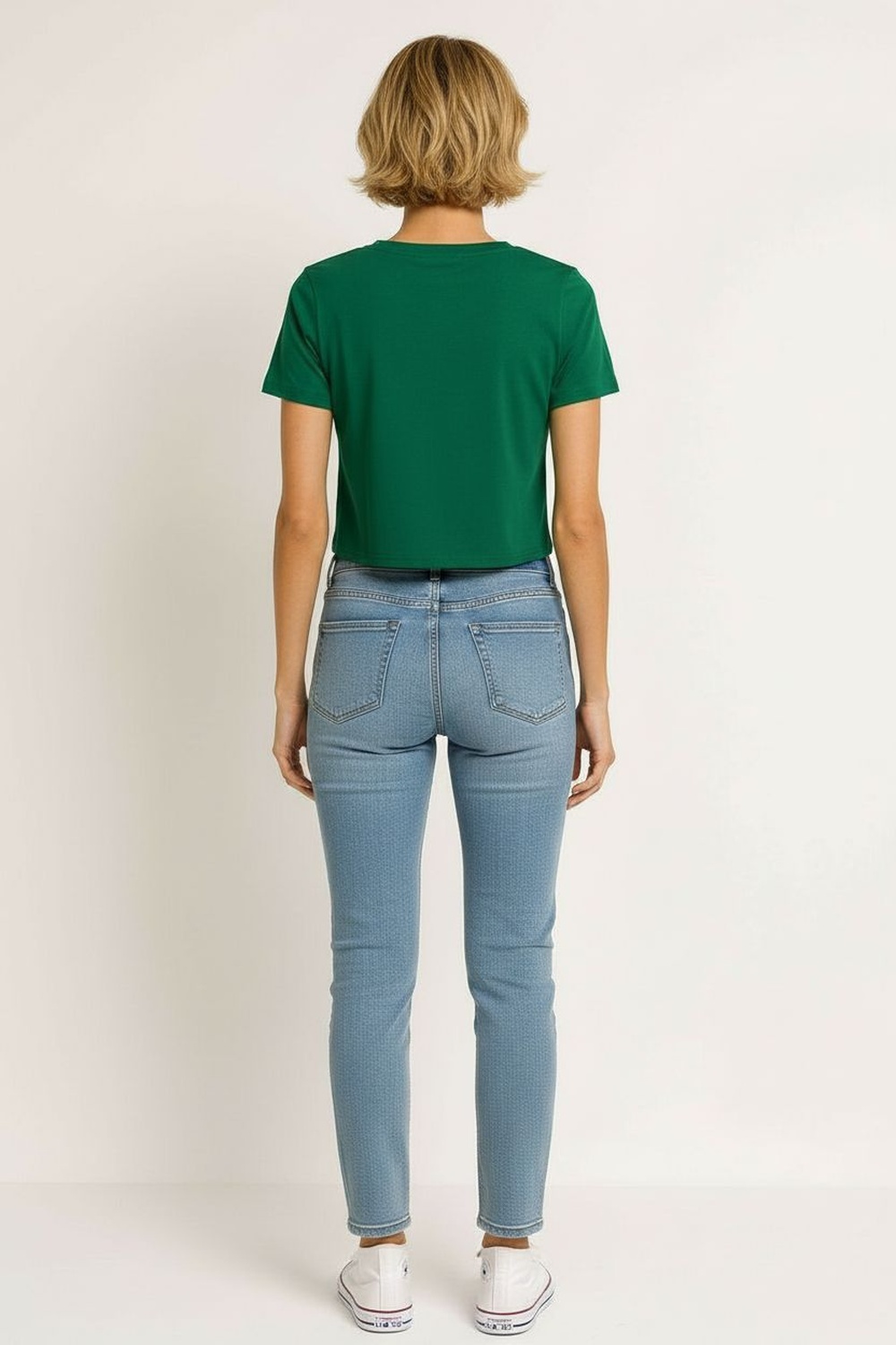 Playera corta de manga corta con escote redondeado, confección en tejido rib que aporta elasticidad y ajuste natural, silueta ceñida que define la forma, largo por arriba de la cintura que brinda un fit actual, terminaciones limpias en cuello y mangas