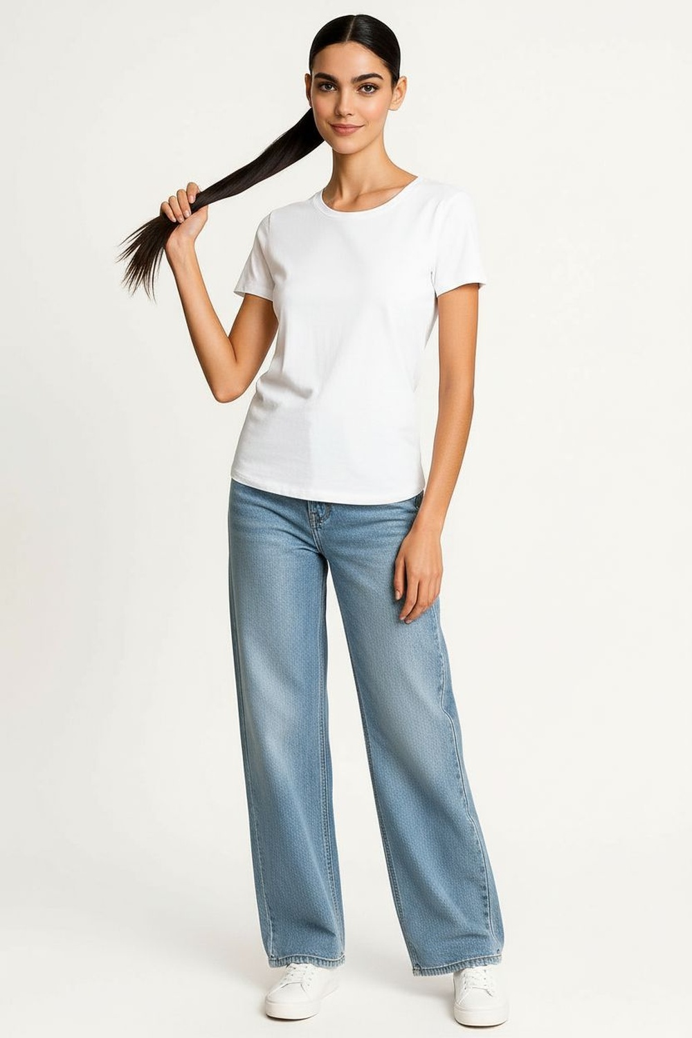 Playera básica con cuello redondo, manga corta, ajuste al cuerpo, tejido ligero y cómodo, acabado uniforme