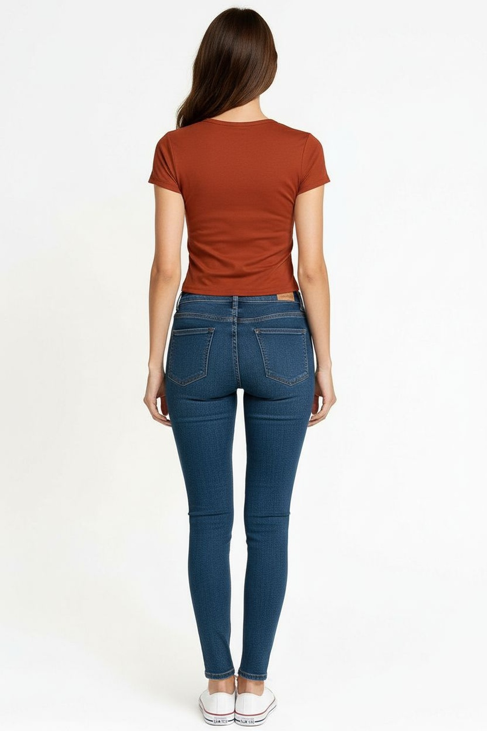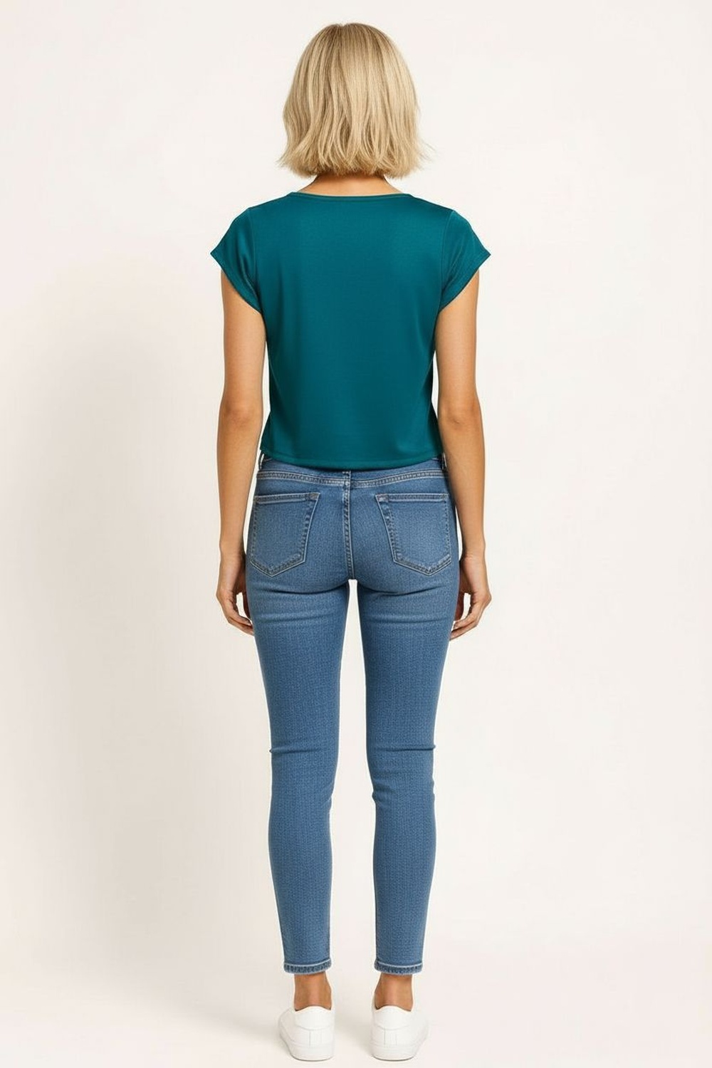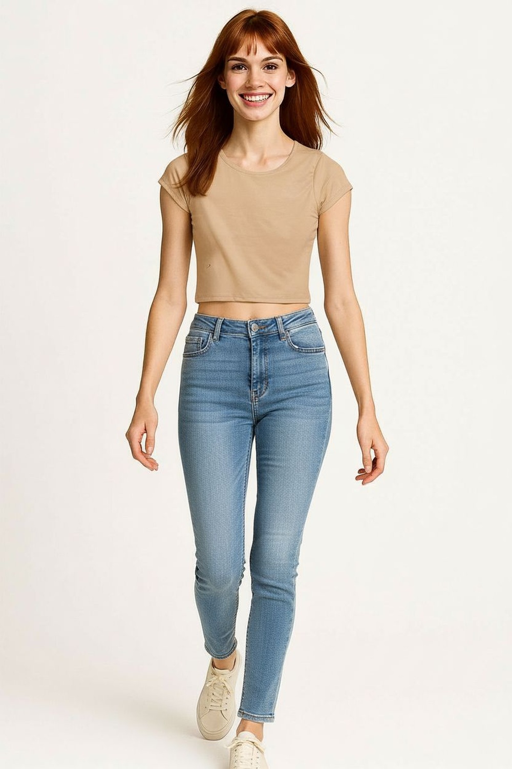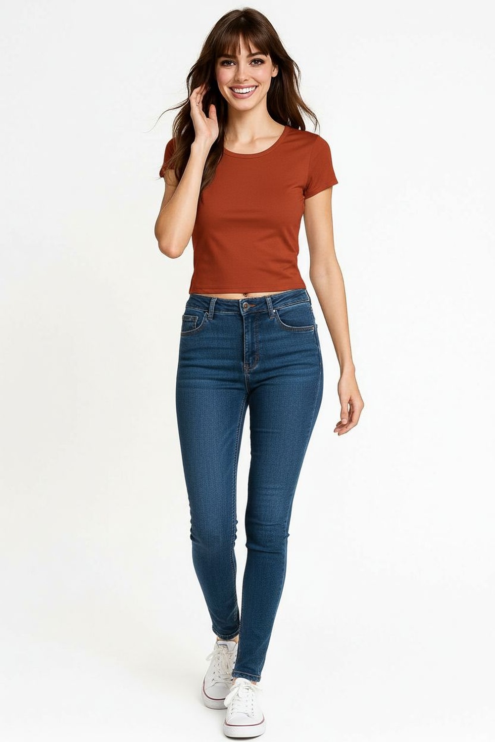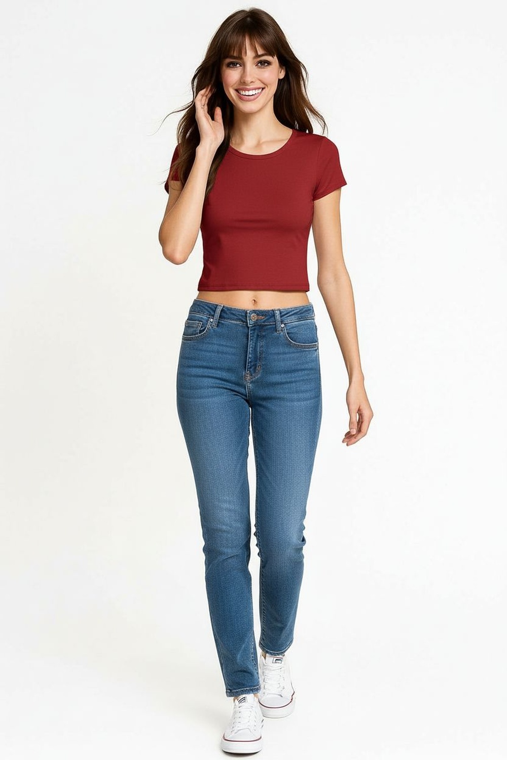 Playera de corte básico con cuello redondo que ofrece ajuste cómodo en la zona superior, mangas cortas con acabado limpio que brindan libertad de movimiento, largo a la cadera que permite calce práctico, confección en tejido suave con tacto agradable que asegura confort durante el día