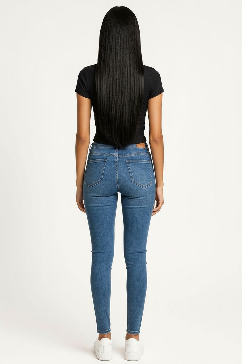 Jeans de corte recto con diseño de bolsas laterales amplias que añaden capacidad de almacenamiento, pretina con ajuste tradicional que aporta estabilidad, pernera relajada que permite movilidad cómoda, estructura firme creada por costuras visibles distribuidas de forma estratégica, largo completo que complementa diferentes tipos de calzado