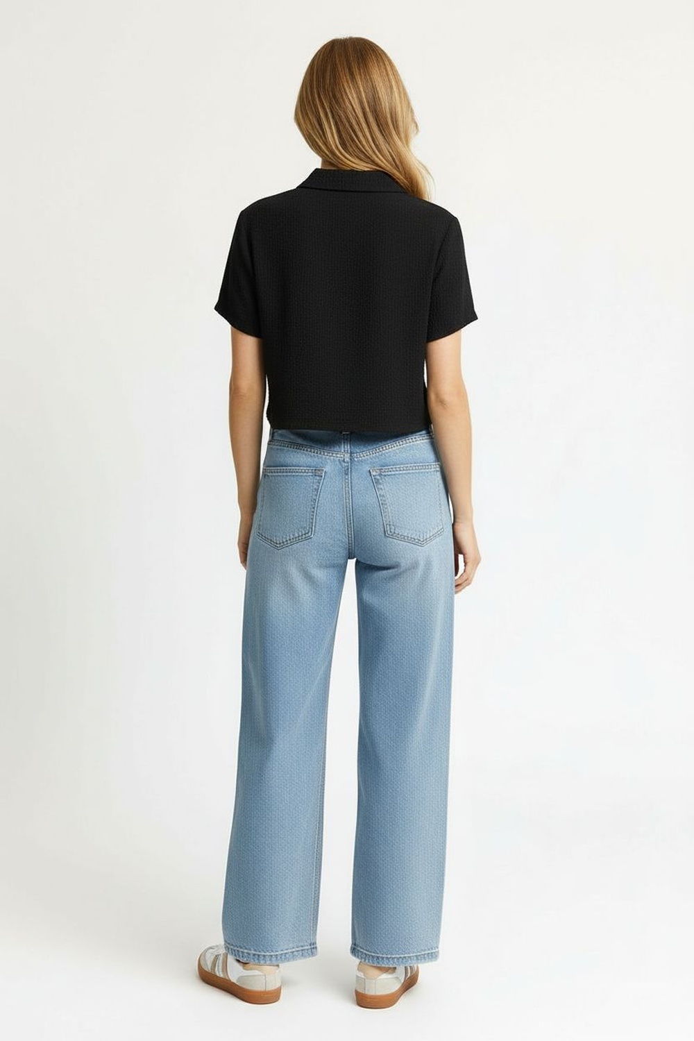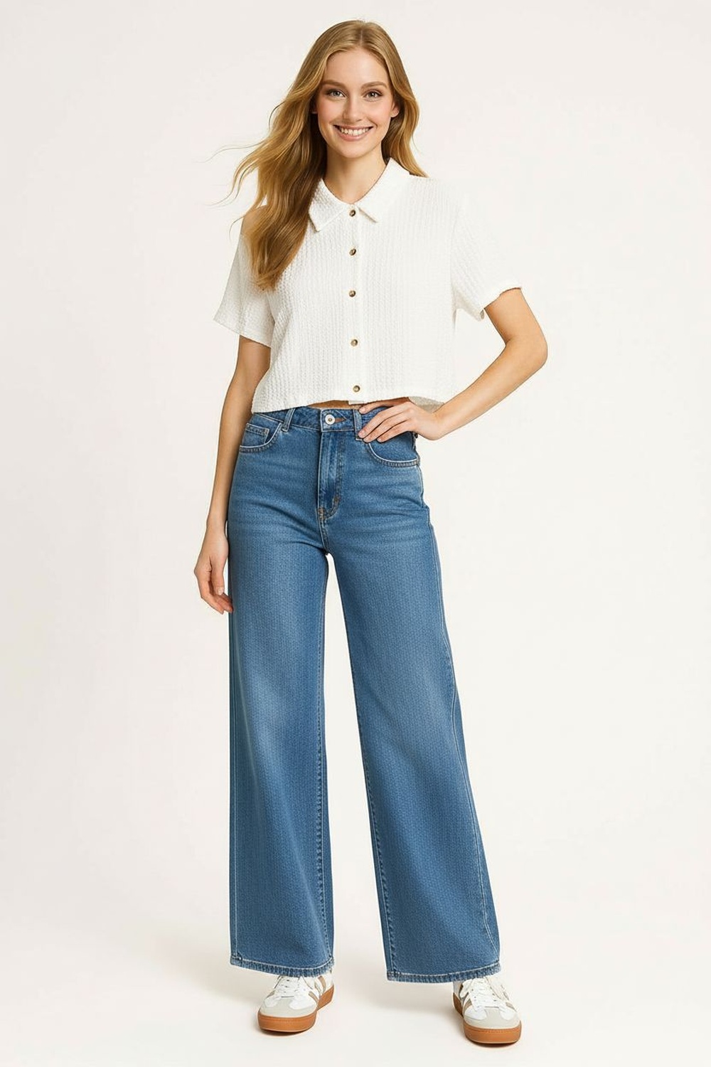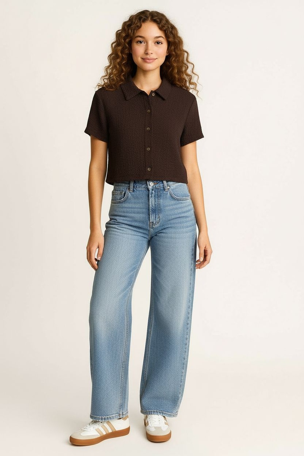 Playera camisera de manga corta con botonadura frontal funcional, corte recto que brinda comodidad, confección en tejido ligero con textura definida, largo corto que aporta practicidad, terminaciones limpias que mantienen la forma de la prenda