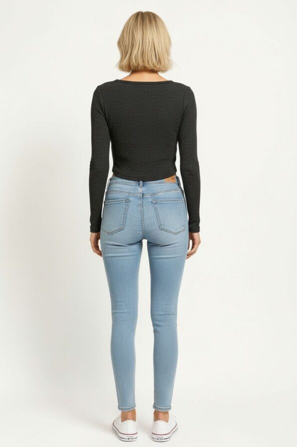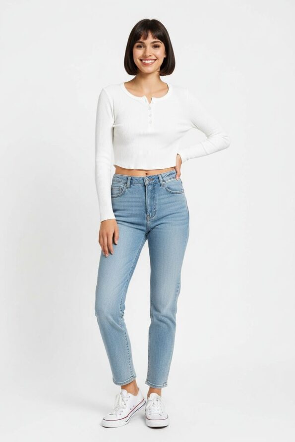 Playera de algodón con manga larga y cuello redondo que ofrece confort y estilo urbano, diseño con estampado frontal y posterior que aporta un toque moderno y juvenil, corte corto que resalta la cintura, confección en tejido de punto suave que brinda frescura y libertad de movimiento, acabado limpio con costuras finas que garantizan una apariencia cuidada y versátil