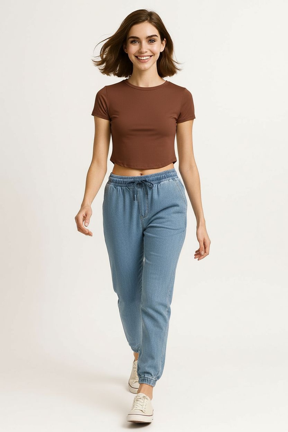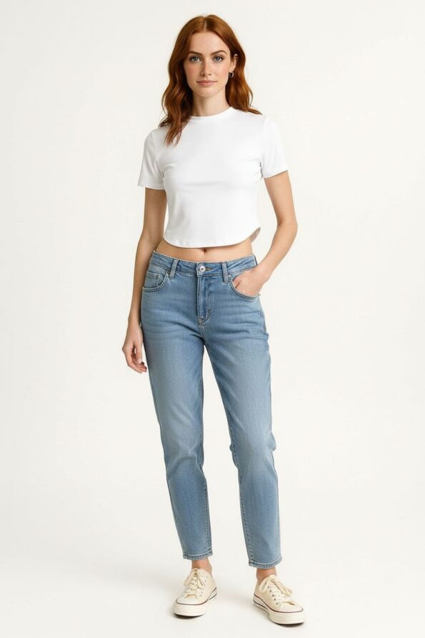 Playera de manga corta con cuello redondo clásico que ofrece un diseño atemporal, confección en tejido suave y elástico que se adapta cómodamente al cuerpo, corte ceñido que resalta la figura y brinda libertad de movimiento, acabado limpio con costuras reforzadas para mayor durabilidad y confort