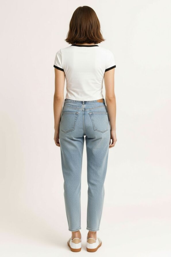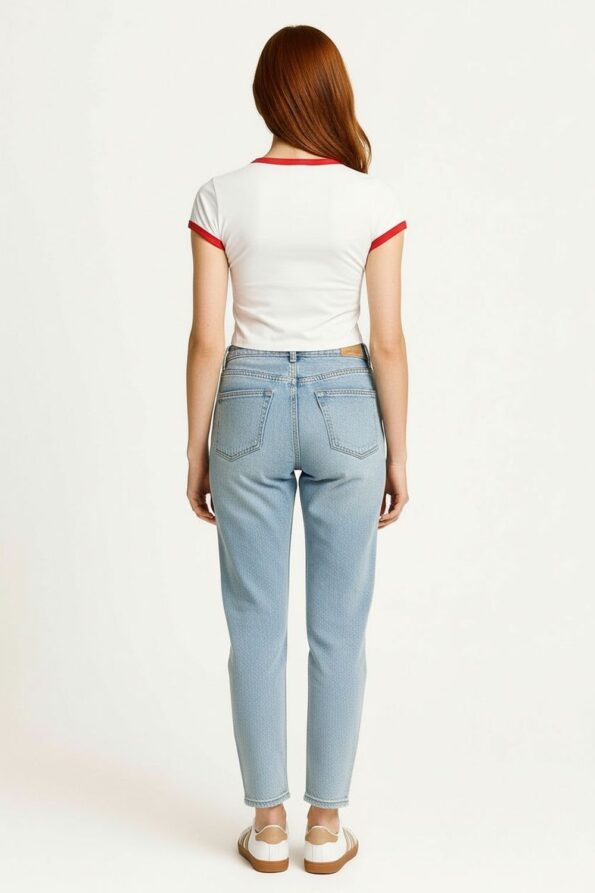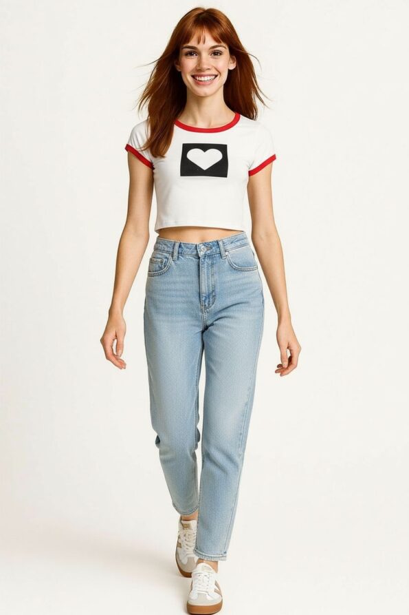 Playera de tejido suave con corte corto que realza la silueta y aporta estilo moderno, escote redondo decorado con bies en contraste que enmarca el cuello, manga corta con acabado limpio que brinda comodidad y ajuste favorecedor, confección ligera que garantiza frescura y libertad de movimiento