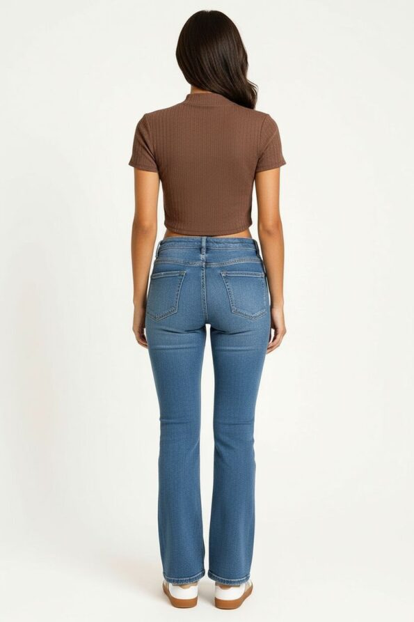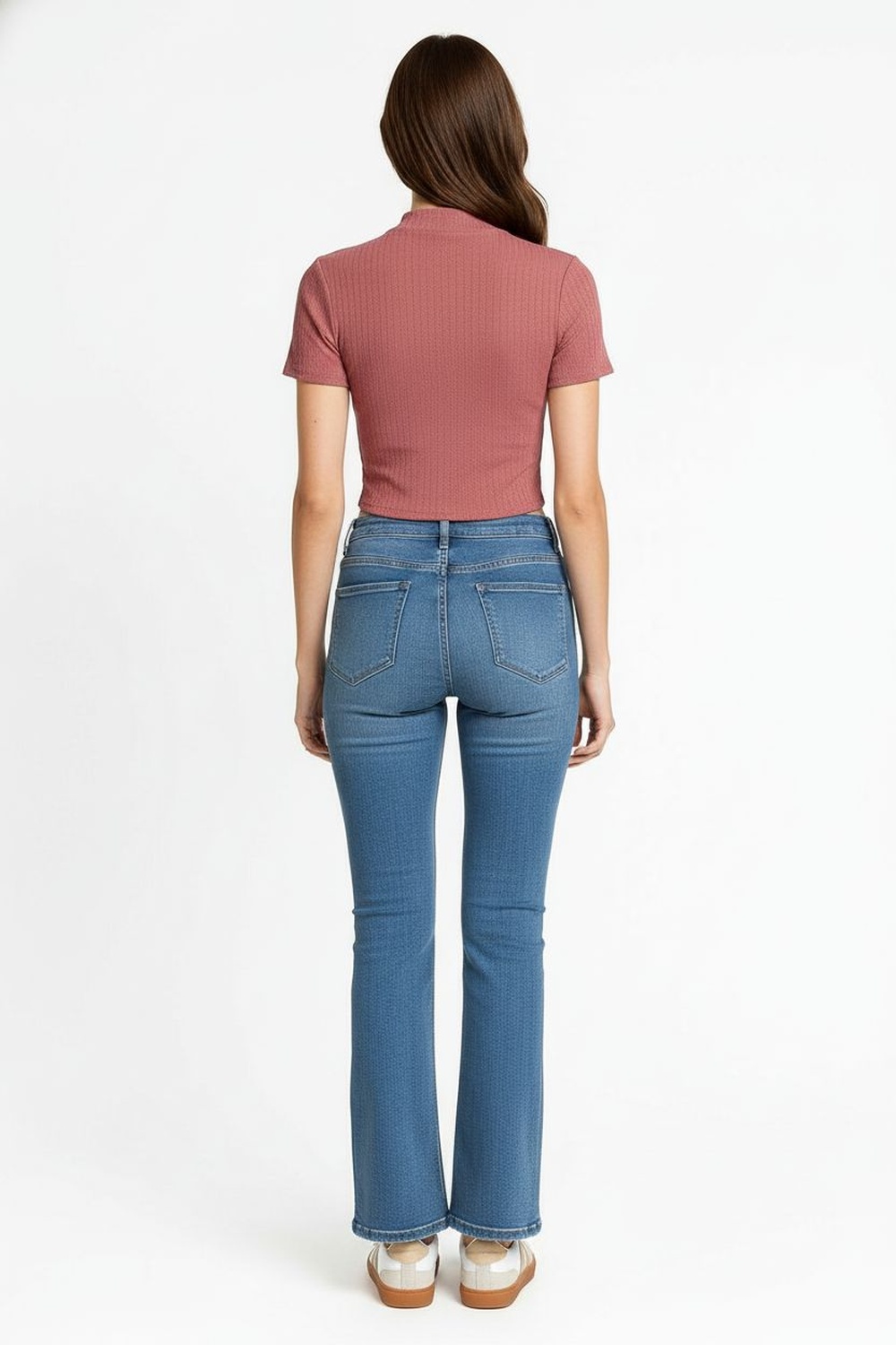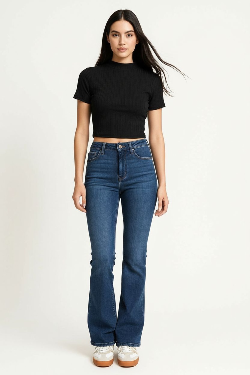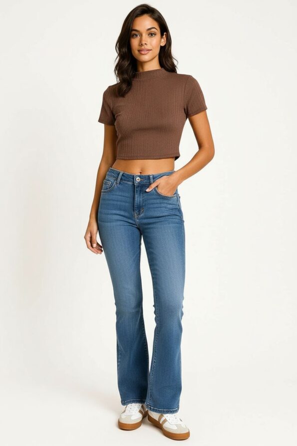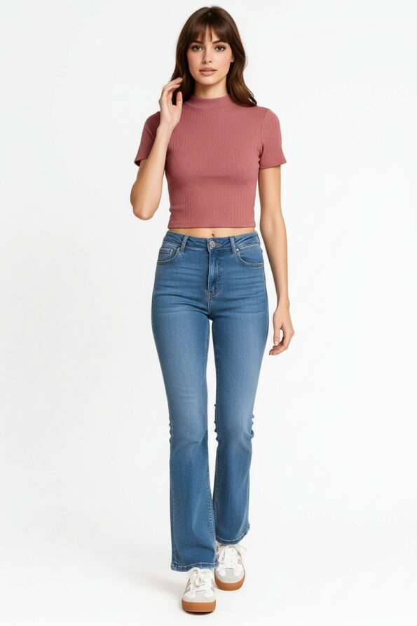 Playera de manga corta con cuello alto y diseño corto que acentúa la cintura, confeccionada en tejido texturizado con elasticidad que brinda comodidad y ajuste al cuerpo, acabado suave que aporta un toque moderno y versátil para distintos estilos