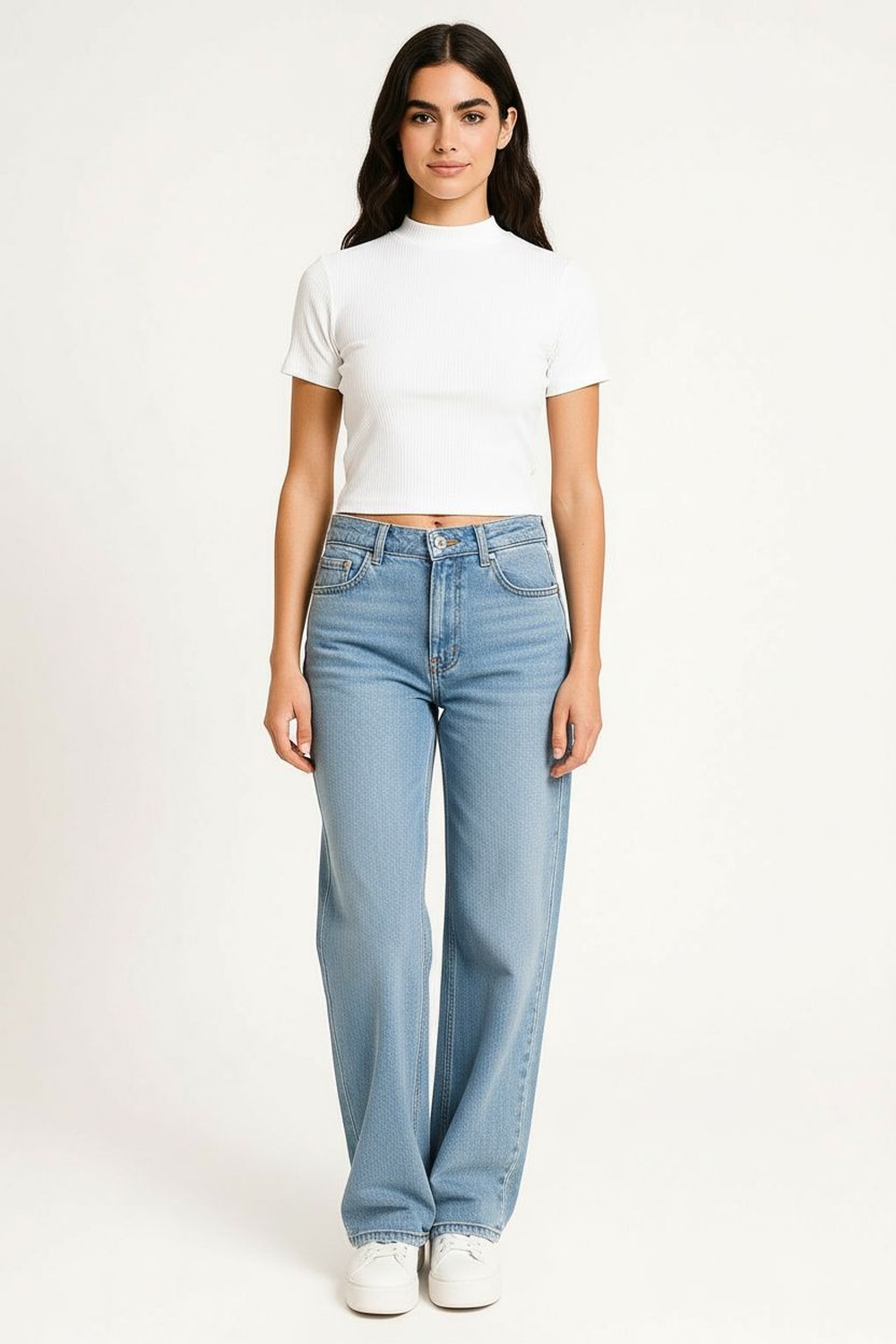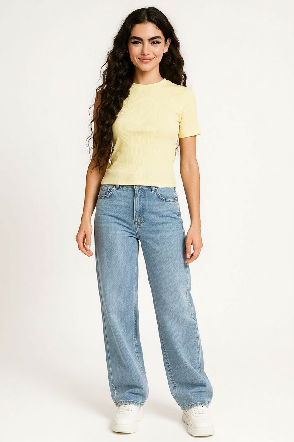 Playera rib manga corta, cuello redondo cerrado, doble tela en cuerpo, tejido acanalado flexible, terminación recta, ajuste cómodo