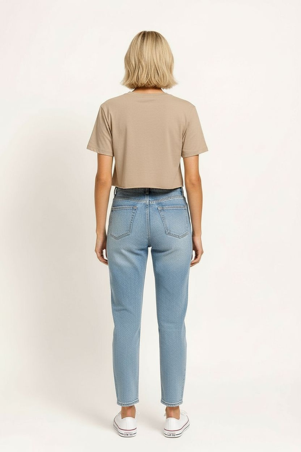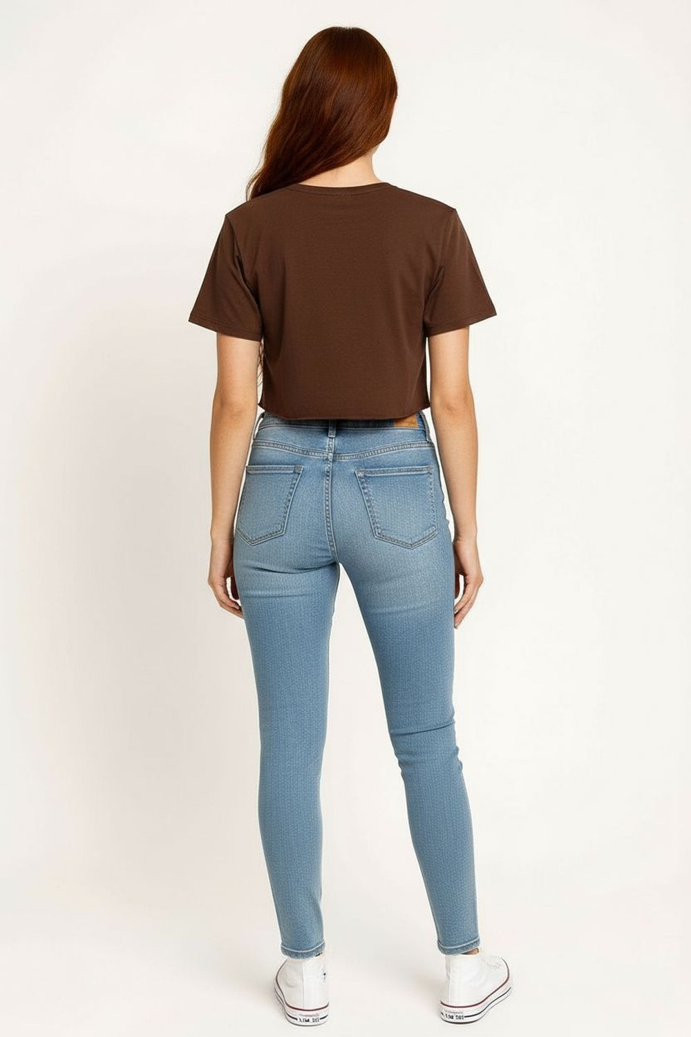 Playera tipo crop de manga corta con corte recto, cuello redondo con acabado sencillo, confección en tejido de algodón de tacto suave, gráfico frontal integrado que aporta identidad, estructura ligera pensada para comodidad prolongada
