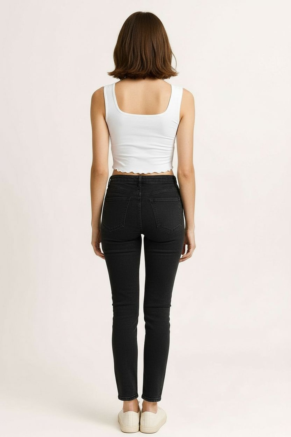Playera de manga corta con escote redondo y aplicación de encaje delicado en el frente, corte recto con largo a la cintura, confección en tejido rib con elasticidad que permite ajuste cómodo al cuerpo