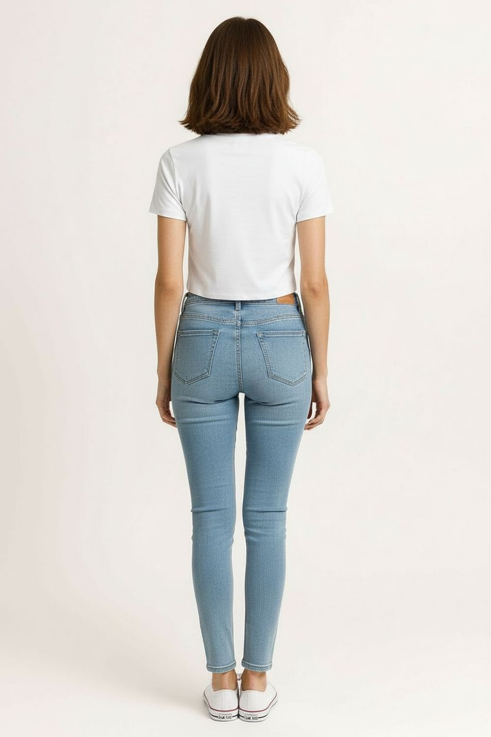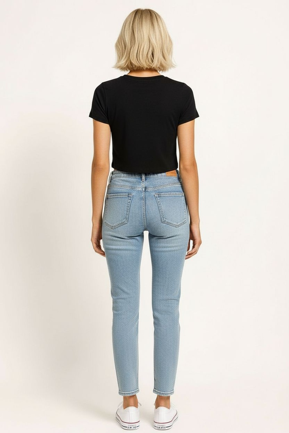 Playera tipo crop elaborada en tejido de algodón suave, manga corta con ajuste ligero al brazo, cuello redondo clásico que brinda comodidad, aplicación frontal decorativa integrada al diseño, largo corto que mantiene proporción equilibrada