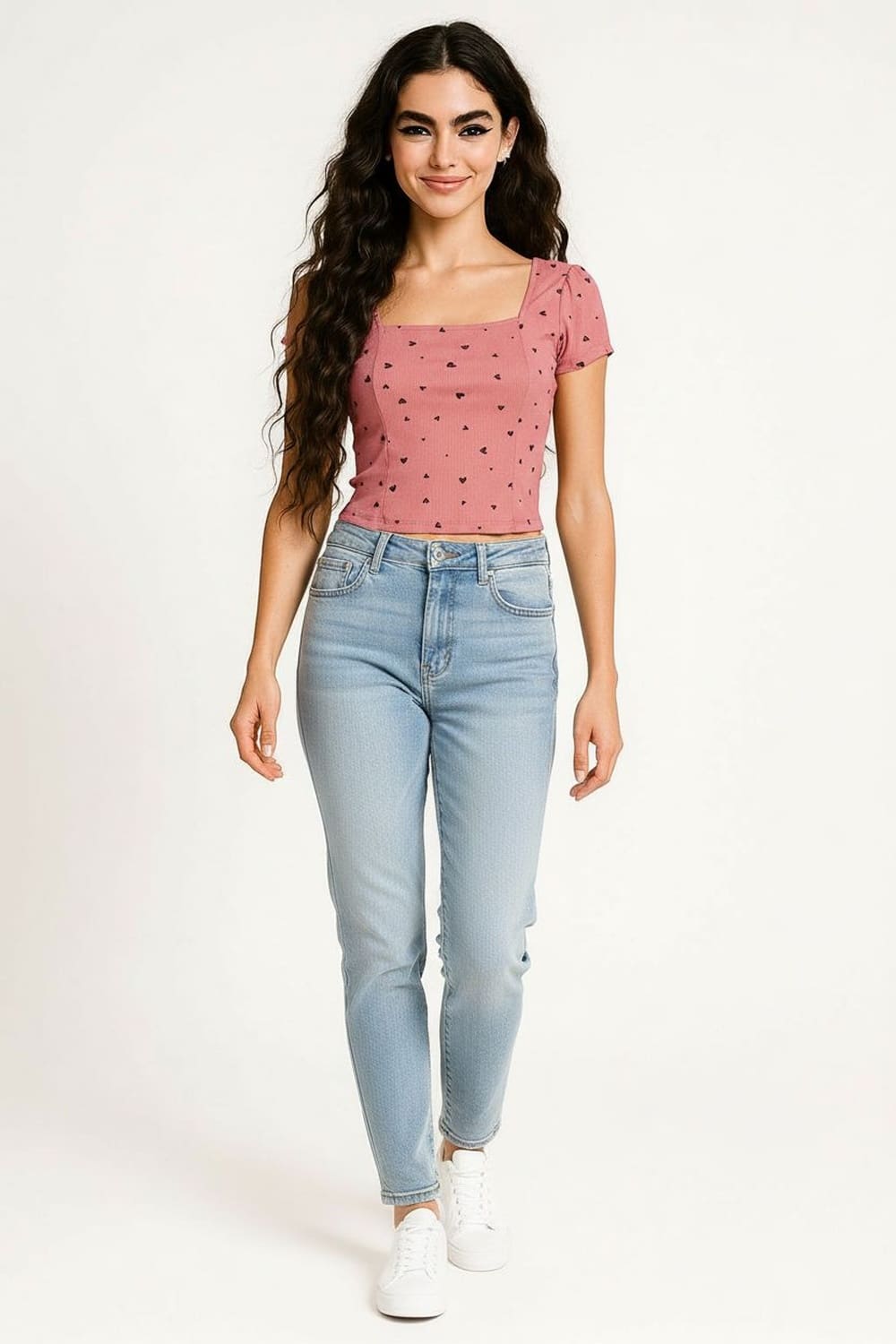 Playera de manga corta con cuello redondo que proporciona ajuste cómodo, largo corto que define la proporción de la prenda, gráfico frontal integrado como elemento visual, confección en tejido ligero de tacto suave que favorece el uso diario, terminaciones prolijas en costados y dobladillo