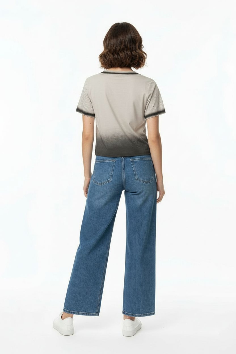 Playera de manga corta con cuello redondo, detalle decorativo al frente, textura ligera, ajuste cómodo, terminado recto