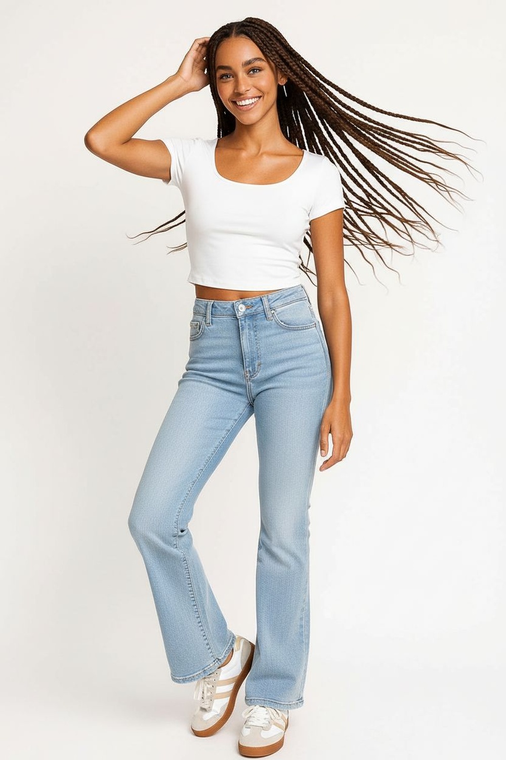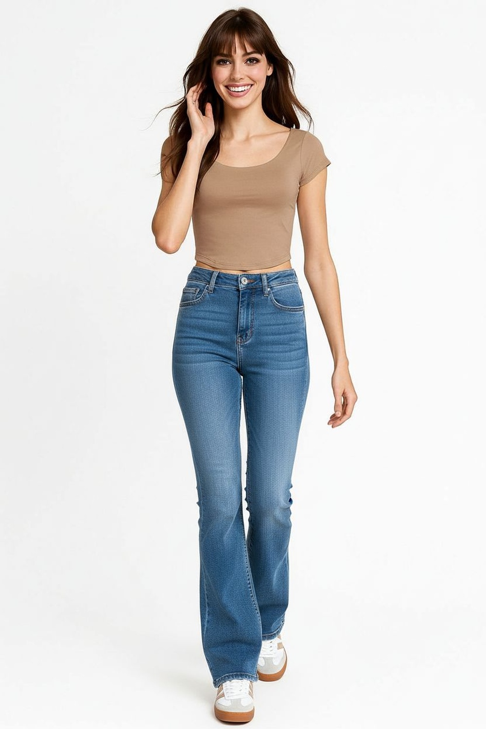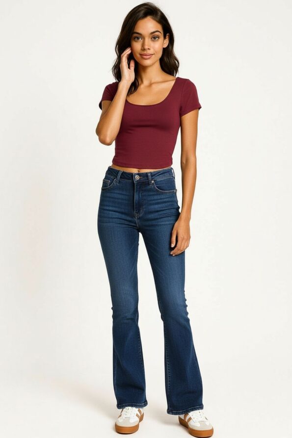 Playera con diseño doble escote que aporta un toque moderno y favorecedor, confeccionada en tejido suave y elástico que se adapta cómodamente al cuerpo, manga corta con acabado limpio que brinda frescura y libertad de movimiento, corte corto que realza la cintura y estiliza la figura