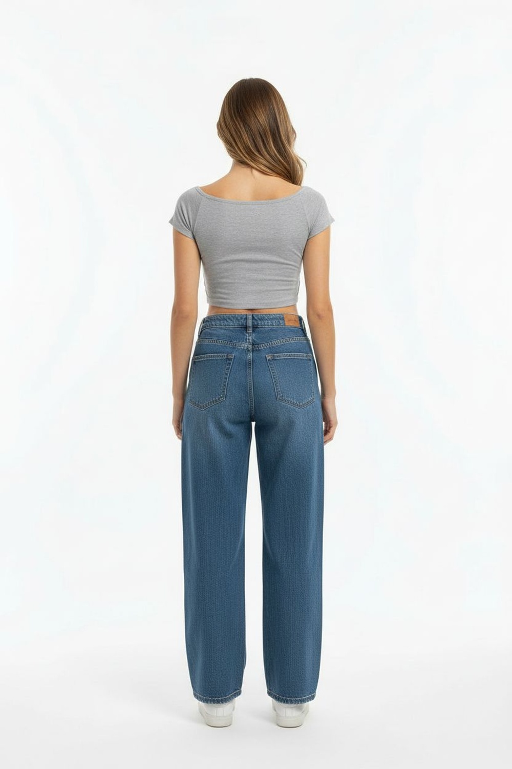 Playera tipo crop con cuello redondo, manga corta, estructura ligera, corte recto con caída suave, acabado limpio en bordes y confección cómoda para uso diario