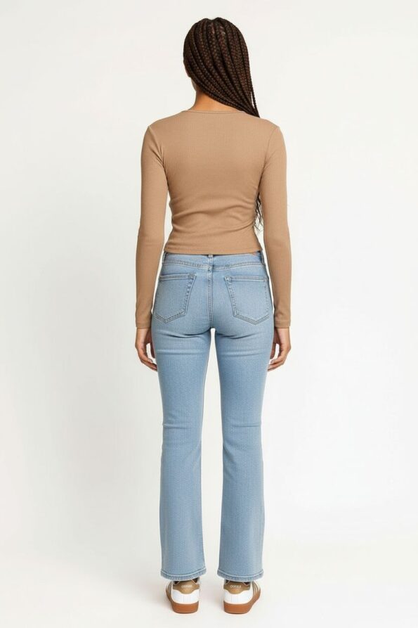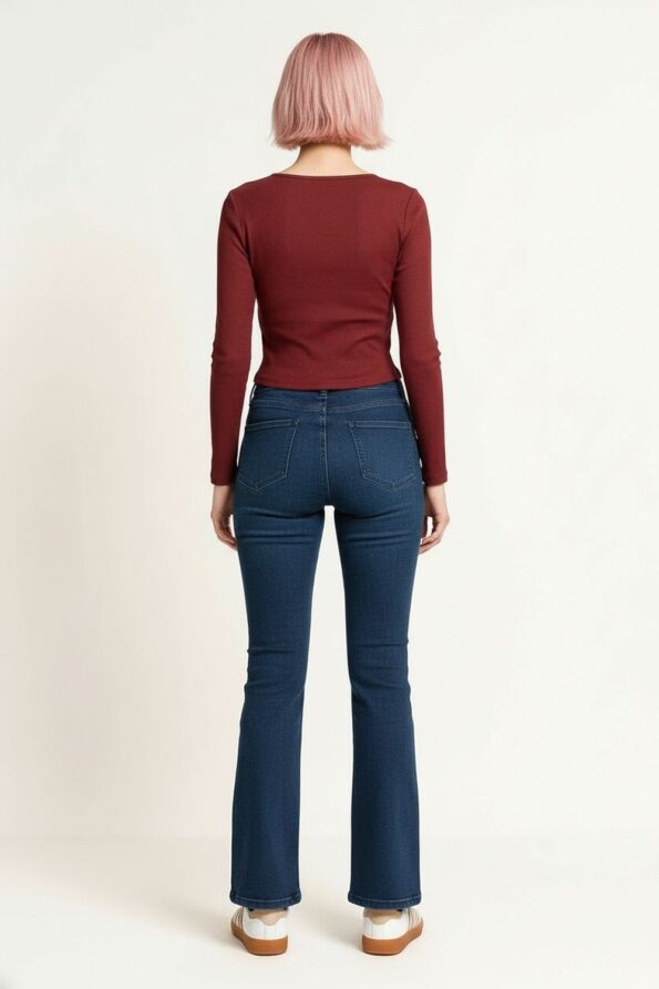 Playera de manga larga confeccionada en tejido rib con textura suave que se ajusta cómodamente al cuerpo, escote frontal con argolla metálica que realza el diseño y aporta un toque moderno, acabado ceñido en cintura que define la silueta, costuras reforzadas que garantizan durabilidad y excelente ajuste para uso diario